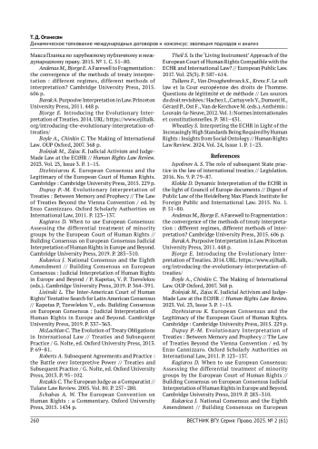 9. 	Dupuy P.-M. Evolutionary Interpretation of Treaties: Between Memory and Prophecy // The Law of Treaties Beyond the Vienna Convention / ed. by Enzo Cannizzaro. Oxford Scholarly Authorities on International Law, 2011. Р. 123-137.