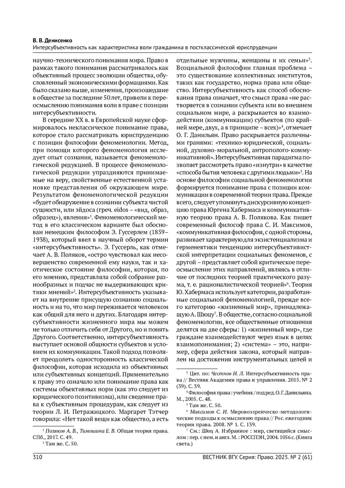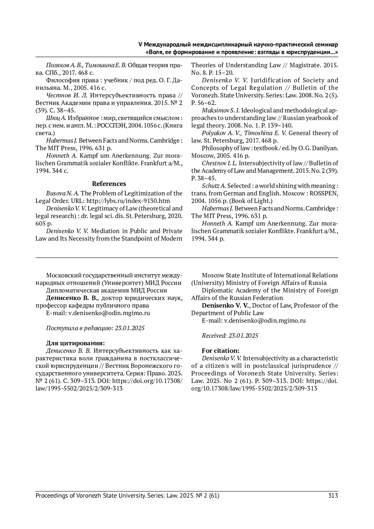 8. 	Честное И. Л. Интерсубъективность права // Вестник Академии права и управления. 2015. № 2 (39). С. 38-45.