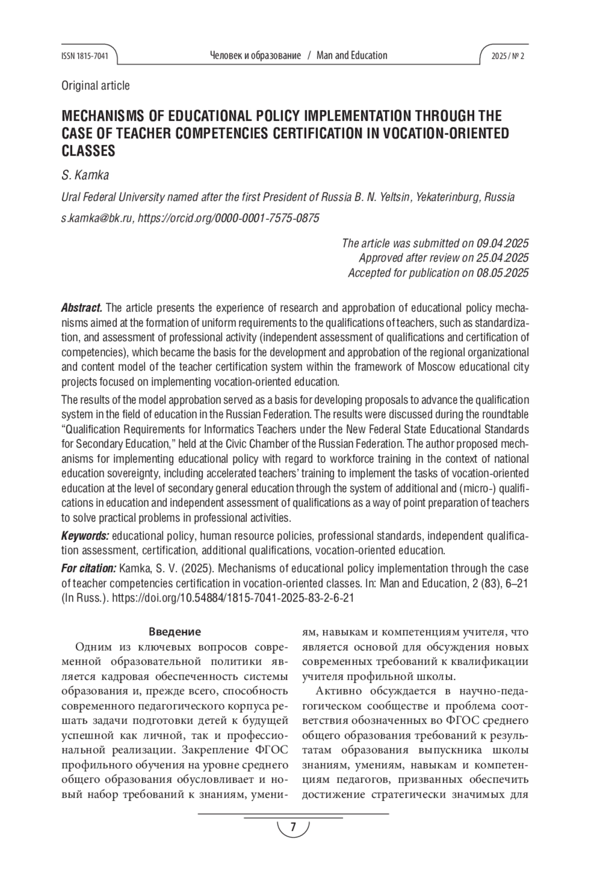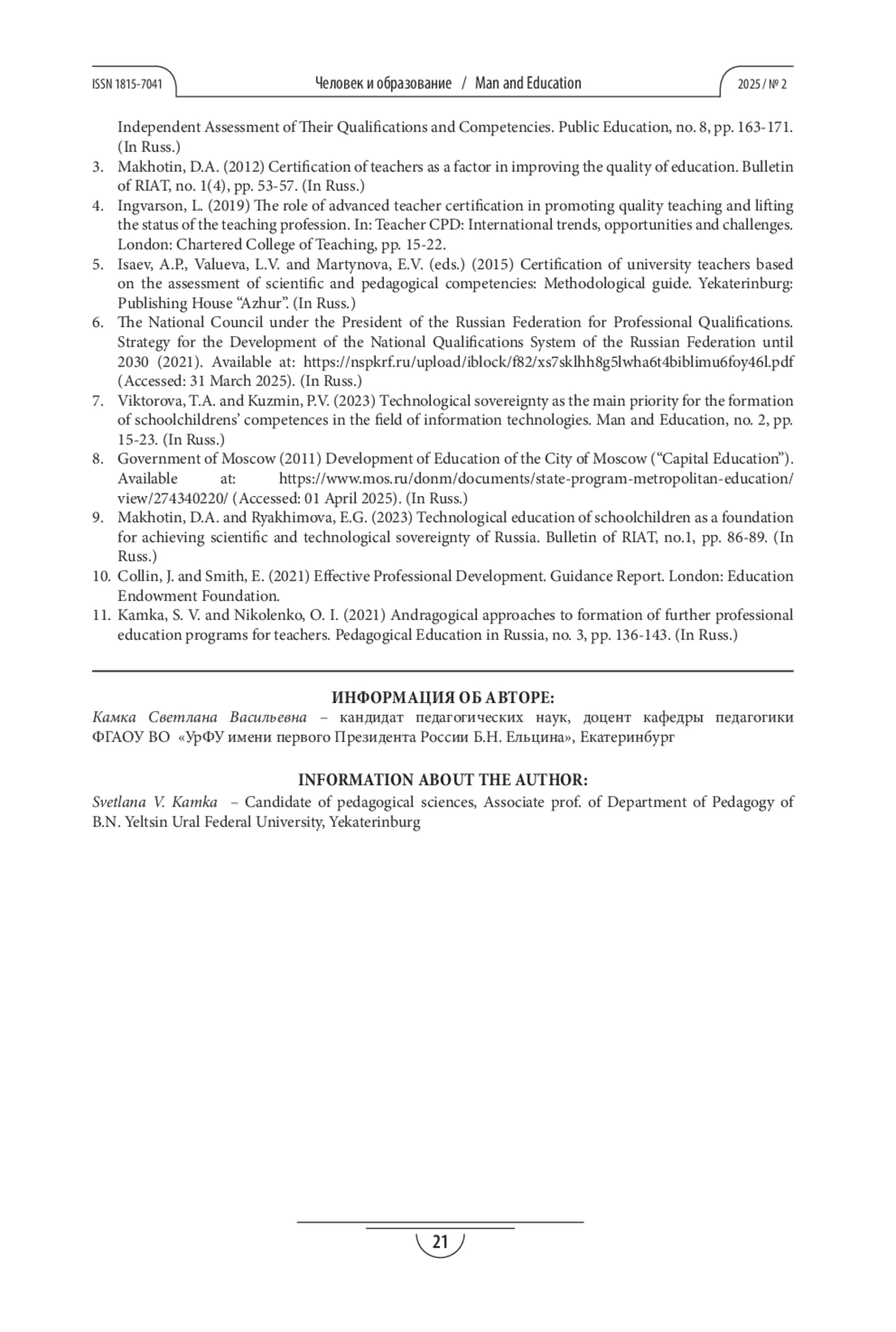 11. Камка С.В., Николенко О.И. Андрагогические подходы к формированию программ дополнительного профессионального образования педагогов // Педагогическое образование в России. 2021. № 3. С. 136-143.