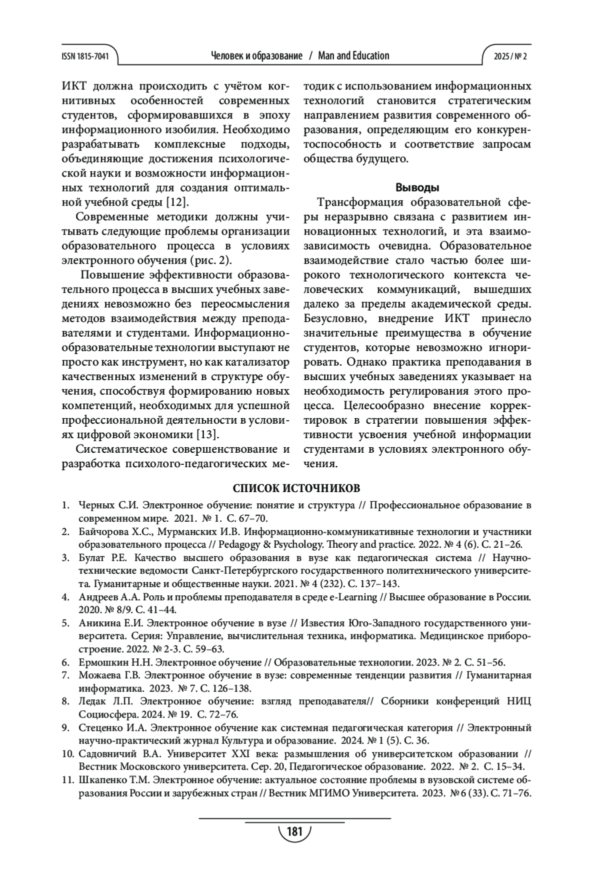 9. Стеценко И.А. Электронное обучение как системная педагогическая категория // Электронный научно-практический журнал Культура и образование. 2024. № 1 (5). С. 36.
