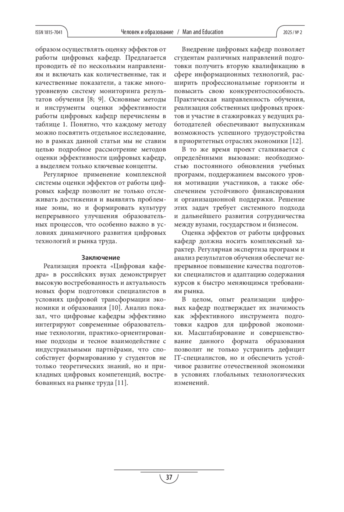 6. Гавриков А.Л., Монахова Л.Ю., Цымбалюк Л.Н. Актуальные формы и методы обучения в условиях цифровой трансформации образования // Человек и образование. 2024. № 3 (80). С. 29-36.