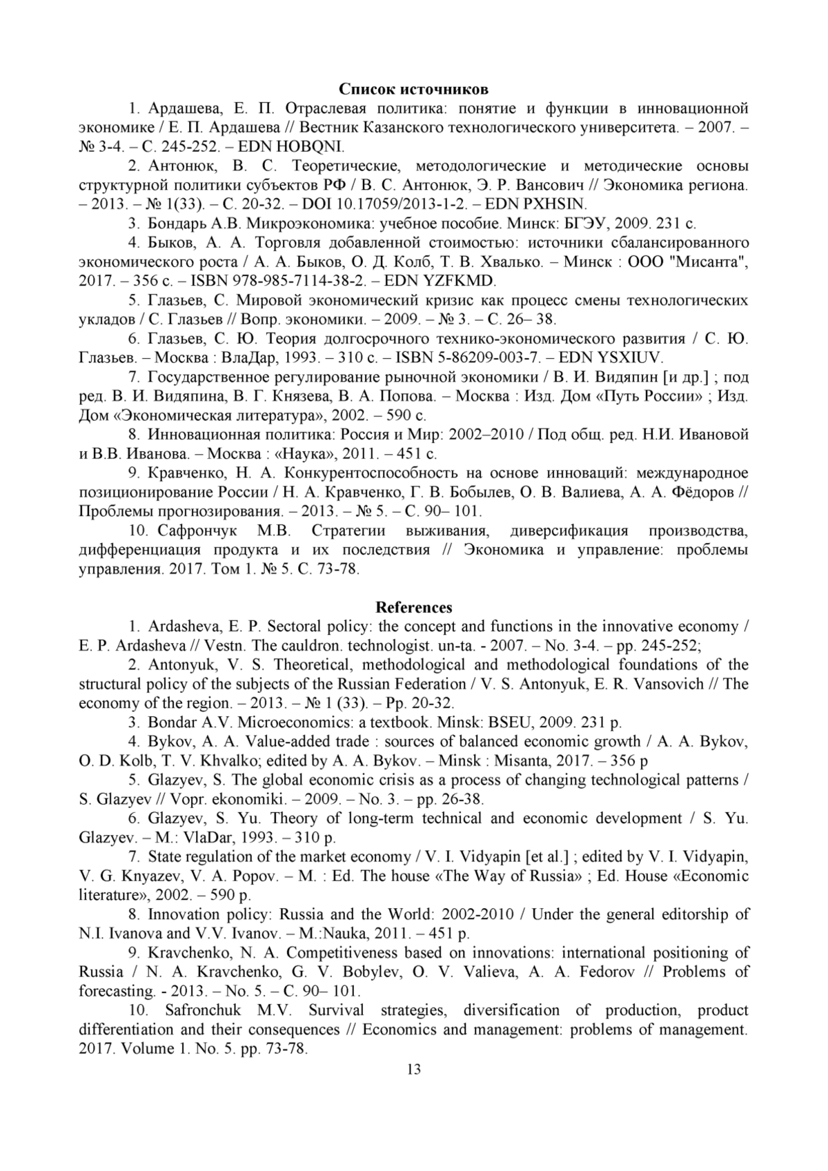 2. 	Антонюк, В. С. Теоретические, методологические и методические основы структурной политики субъектов РФ / В. С. Антонюк, Э. Р. Вансович // Экономика региона. - 2013. - № 1(33). - С. 20-32. DOI: 10.17059/2013-1-2