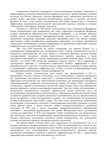 Современное общество сталкивается с многочисленными вызовами, связанными с неравномерным социально-экономическим развитием регионов. Данная проблема особенно актуальна для России, поскольку субъекты федерации могут значительно различаться по уровню жизни населения, социально-экономическому развитию и наличию доступных ресурсов. В связи с этим, особые экономические зоны играют важную роль и становятся эффективным инструментом региональной экономической политики, особенно в условиях глобализации и интеграции в мировую экономику.