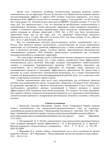 4. 	Как ОЭЗ способствуют развитию регионов присутствия // Российская газета - Экономика Центрального округа: №234(9179) [Электронный ресурс] URL: https://rg.ru/2023/10/17/reg-cfo/resursy-dlia-rosta.html (дата обращения: 19.01.2025 г.).