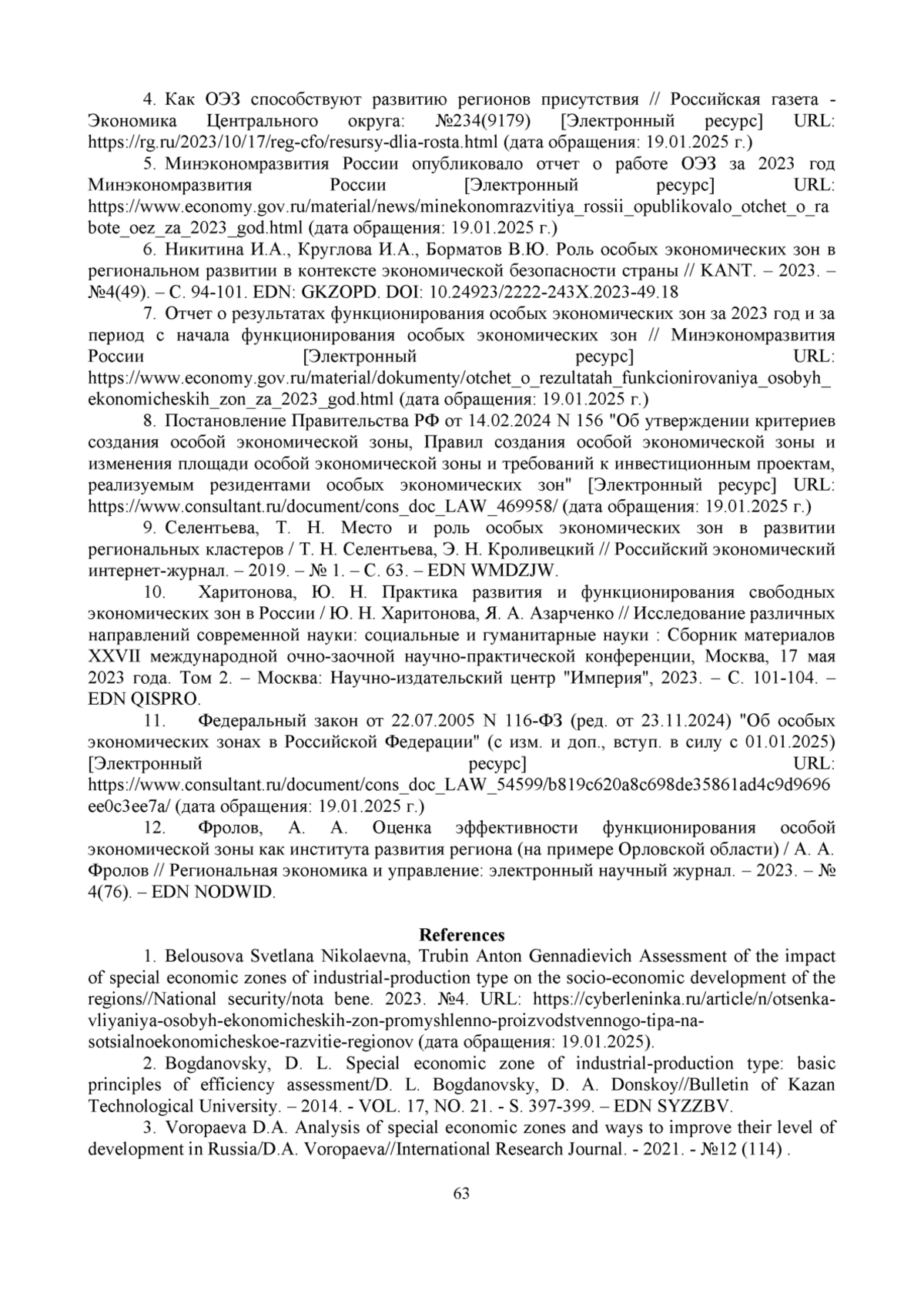 11. 	Федеральный закон от 22.07.2005 N 116-ФЗ (ред. от 23.11.2024) “Об особых экономических зонах в Российской Федерации” (с изм. и доп., вступ. в силу с 01.01.2025) [Электронный ресурс] URL: https://www.consultant.ru/document/cons_doc_LAW_54599/b819c620a8c698de35861ad4c9d9696ee0c3ee7a/(дата обращения: 19.01.2025 г.).