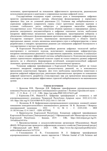 5. 	Продовольственная и сельскохозяйственная организация Объединённых Наций (ФАО). В Кыргызстане проводится цифровизация сельского хозяйства [Электронный ресурс] // Официальный сайт ФАО. - 2024. - URL: https://www.fao.org/countryprofiles/news-archive/detail-news/ru/c/1675234.