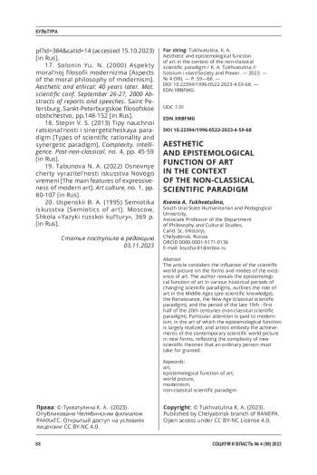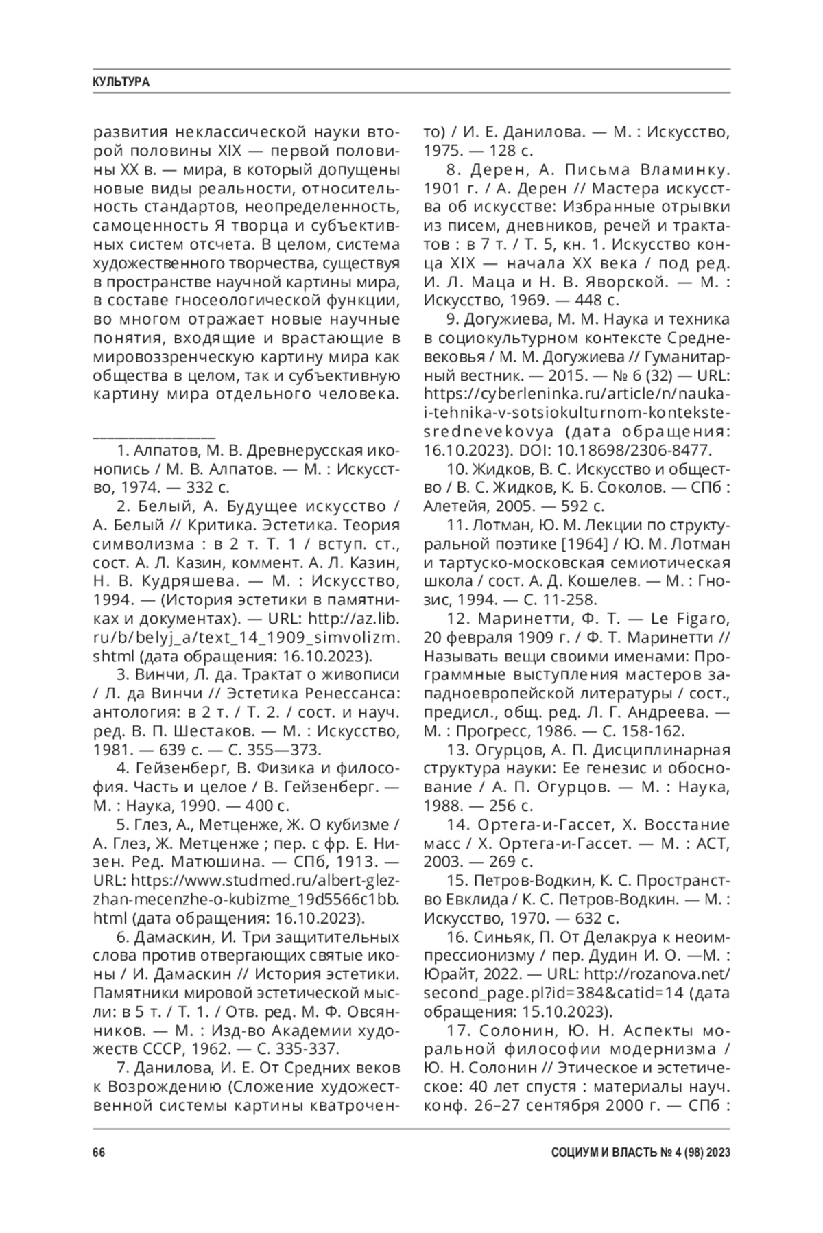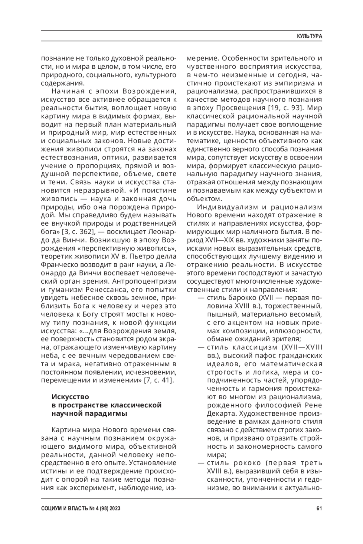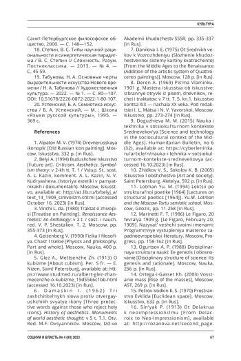 19. 	Табунова, Н. А. Основные черты выразительности искусства Нового времени / Н. А. Табунова // Художественная культура. - 2022. - № 1. - С. 80-107.  DOI: 10.51678/2226-0072-2022-1-80-107  EDN: UZQPQT
