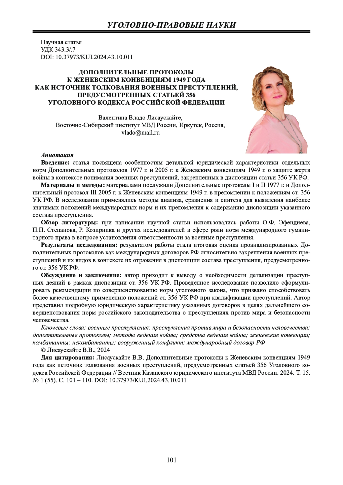 7. Лисаускайте В.В. Преступления со специфическим статусом по международному уголовному праву // Сибирский юридический вестник. 2010. № 2 (49). С. 107 - 115. EDN: LBWCFZ