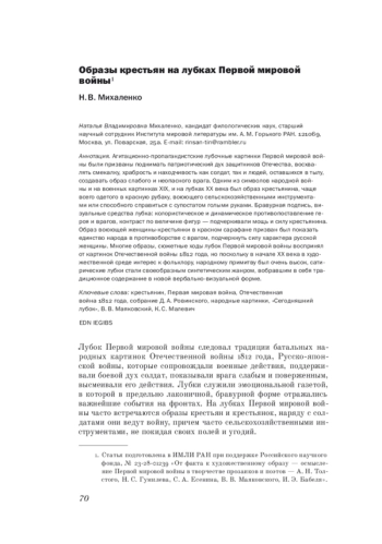 Propaganda cheap popular prints of the World War I were designed to raise the patriotic spirit of the defenders of the Fatherland, to praise the ingenuity, bravery and resourcefulness of both soldiers and people in the rear, to create an image of the weak and harmless enemy. One of the symbols of the people’s war in both military pictures of the 19th century and in popular prints of the 20th century was the peasant, most often in a red shirt, fighting an enemy with agricultural implements or with bare hands. The bravura signature and visual means of popular prints - the coloristic and dynamic juxtaposition of the hero and enemies, the contrast in size of figures - emphasized the power and strength of the peasant. The image of the peasant woman in a sarafan at war was intended to show the unity of the people fighting the enemy and to emphasize the strong character of the Russian woman. Popular prints of the World War I took many images and plot moves from the pictures of the Patriotic War of 1812; since in the early 20th century, in the artistic environment, interest in folklore and folk art was very high, satirical popular prints became a kind of synthetic genre that absorbed traditional content in new verbal and visual forms.