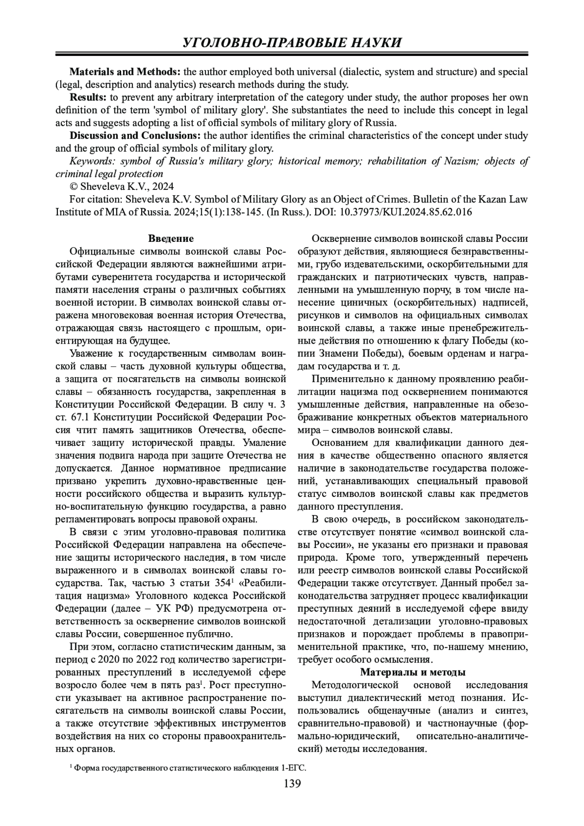 Материалы и методы: в процессе исследования использовались общенаучные (диалектический, системно-структурный), частные (формально-юридический, описательно-аналитический) методы.