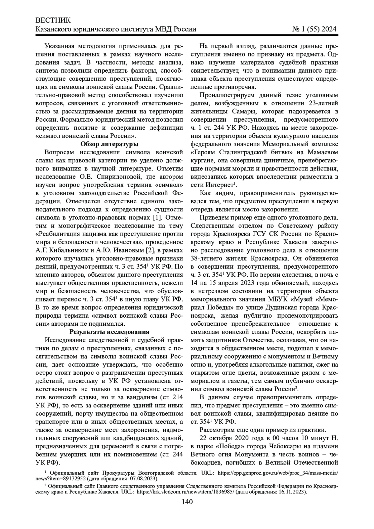 Материалы и методы: статья основана на всеобщем диалектико-материалистическом методе познания закономерностей объективных явлений и процессов реальной действительности, подлежащих уголовно-правовому регулированию. Применены также формально-логический, системный, функциональный, социологический методы, а также междисциплинарный (комплексный) подход с элементами этимологического, семантического анализа и экстраполяция.