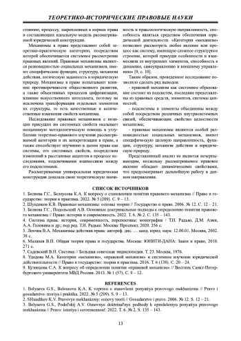 1. 	Беляева Г.С., Белоусова К.А. К вопросу о становлении понятия правового механизма // Право и государство: теория и практика. 2022. № 5 (209). С. 9 - 13.