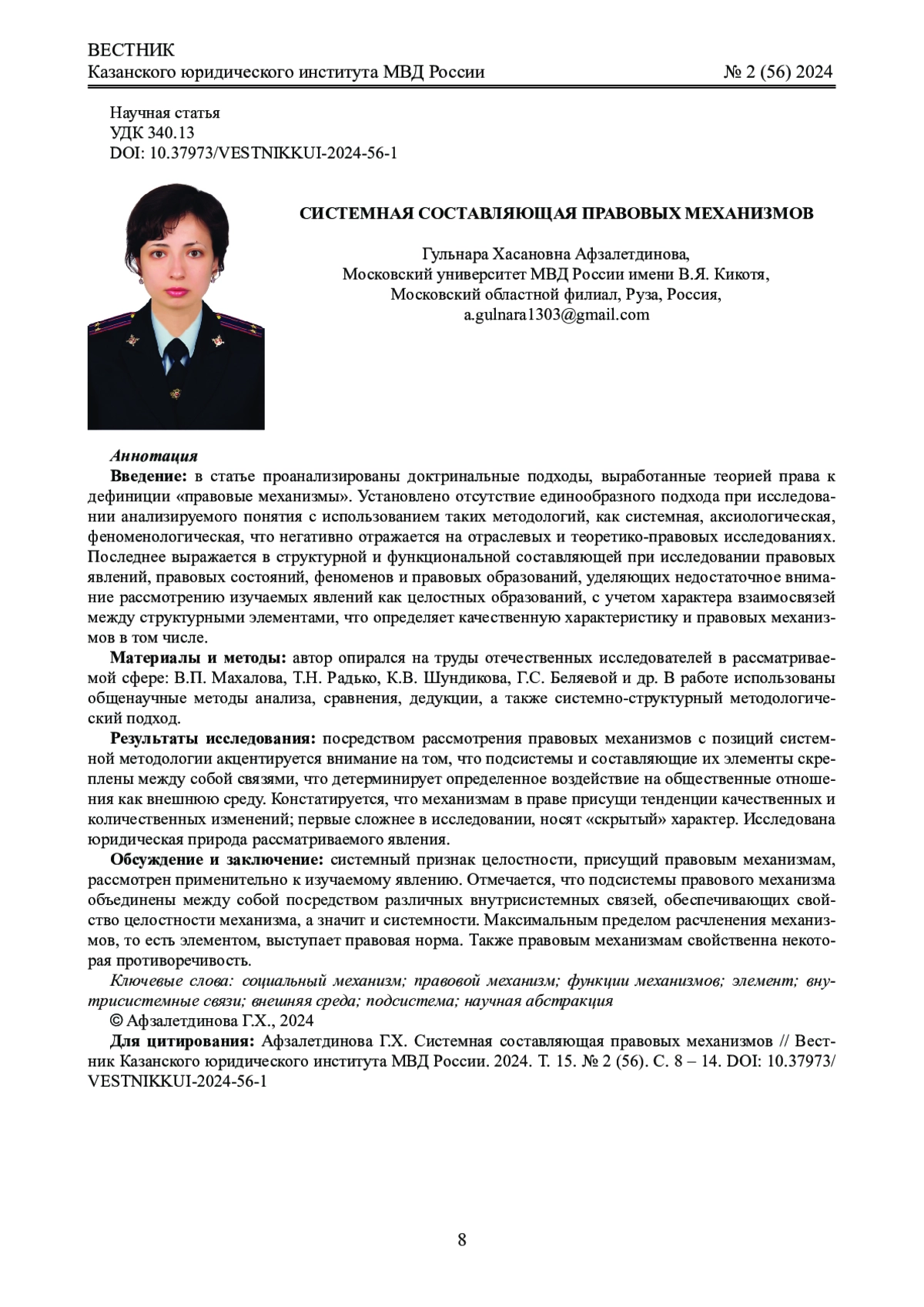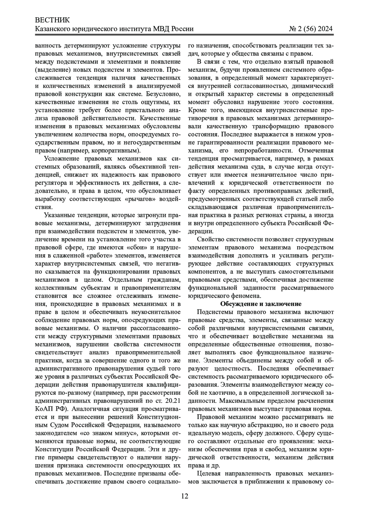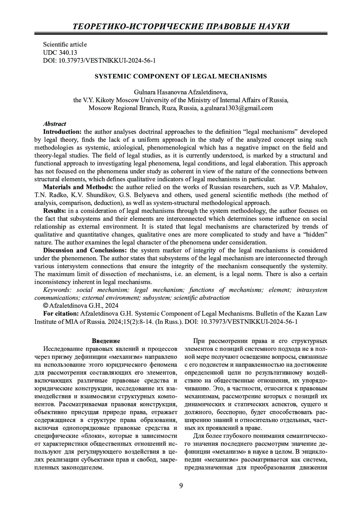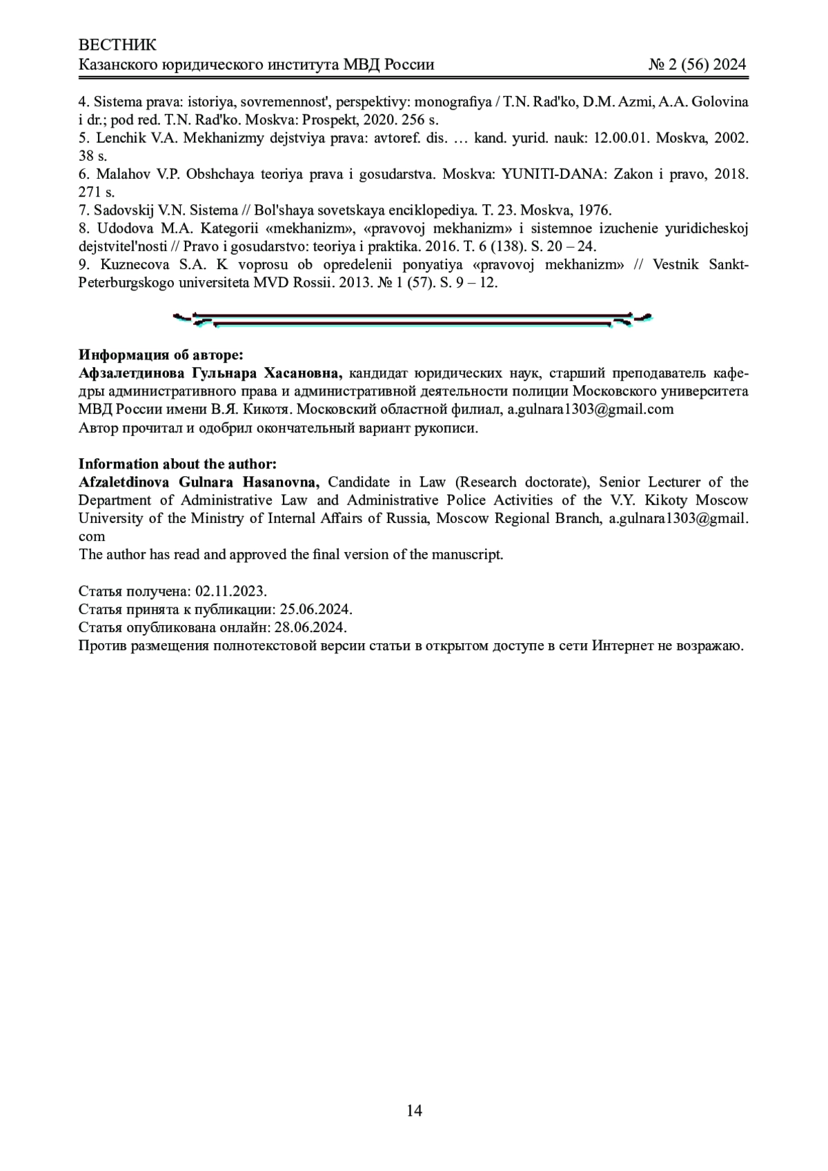 9. 	Кузнецова С.А. К вопросу об определении понятия “правовой механизм” // Вестник Санкт-Петербургского университета МВД России. 2013. № 1 (57). С. 9 - 12. EDN: QBBDUN