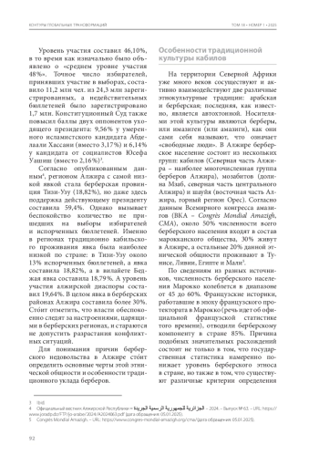 8. Chaker S. Berbérité et émigration kabyle // Peuples mediterraneens. - 1985. - N 31-32. - Франц. яз. - URL: https://www.persee.fr/doc/remmm_0035-1474_1987_num_44_1_2152 (дата обращения: 05.01.2025).