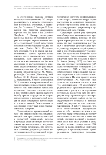 6. Стригунов К.С. Преступные организации как субъекты неклассических войн и угроза государственному суверенитету Мексики // Латинская Америка. - 2024a. - № 2. - С. 21-39. - https://doi.org/10.31857/S0044748X24020025.
