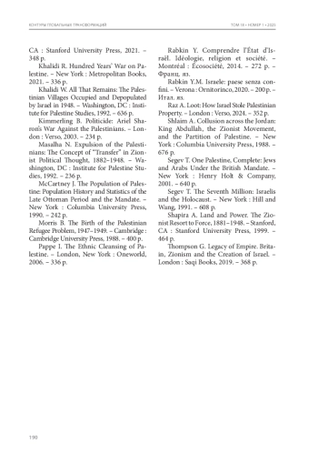 16. Khalidi R. Hundred Years’ War on Palestine - New York : Metropolitan Books, 2021. - 336 р.