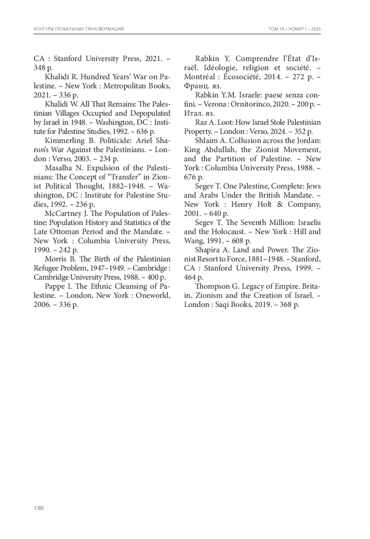 22. Pappe I. The Ethnic Cleansing of Palestine - London, New York : Oneworld, 2006. - 336 p.