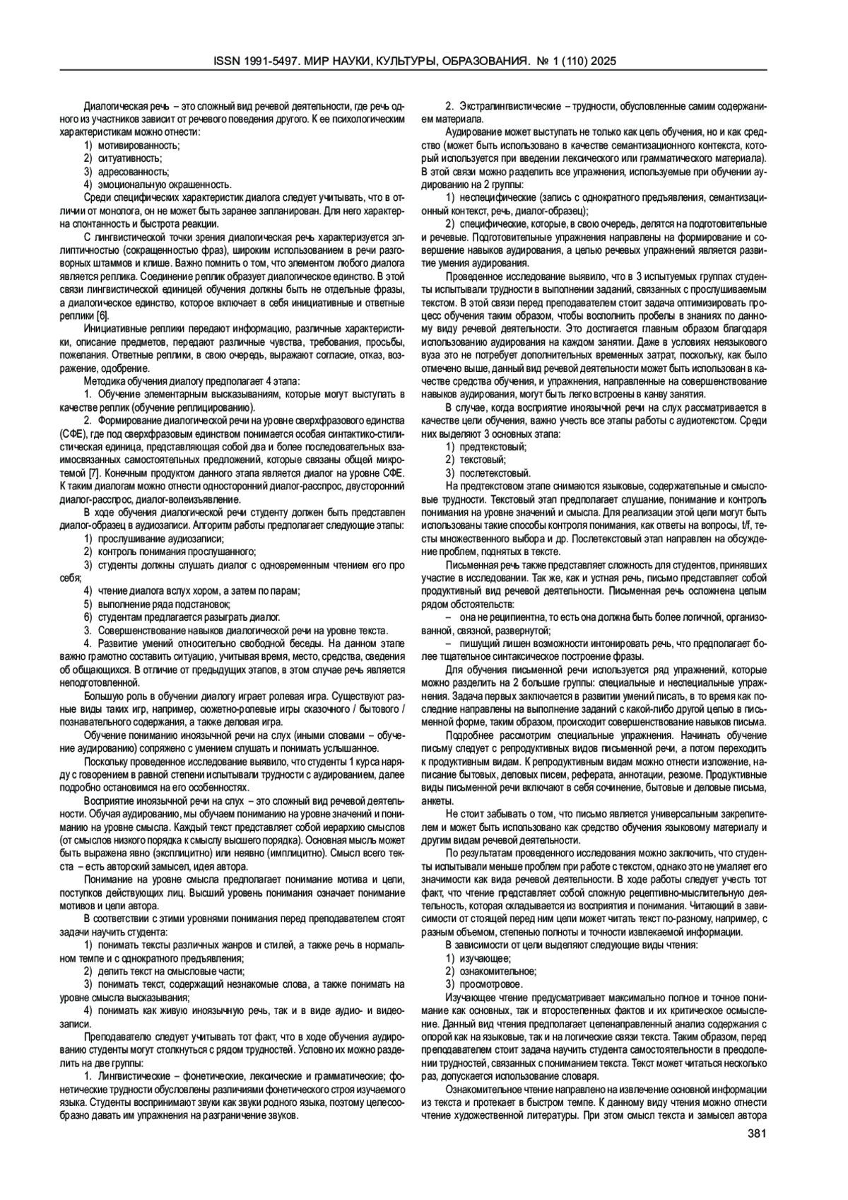 2. Осадчая Т.Ю. Современные подходы к обучению аудированию на занятиях по иностранному языку в вузе. Вестник Кемеровского государственного университета. 2017; № 2: 206-210.