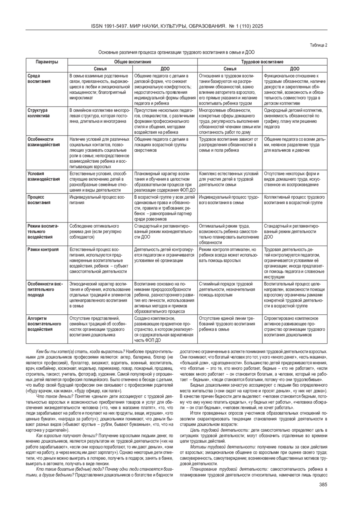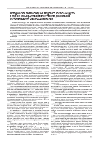 Авторами рассматривается тема организации комплексного методического сопровождения трудового воспитания детей в едином образовательном пространстве дошкольной образовательной организации и семьи; раскрываются цели, задачи, принципы организации трудового воспитания дошкольников; делается акцент на разработку содержания методического сопровождения данного вида деятельности; характеризуются затруднения родителей воспитанников в организации трудовой деятельности детей и проводится анализ их отношения к вопросам организации трудового воспитания в семье; обосновываются тенденции становления трудовой деятельности в старшем дошкольном возрасте; уточняются различия организации трудовой деятельности детей, включающие параметры позиций общего воспитания и трудового в условиях семьи и детском коллективе дошкольной образовательной организации; приводятся результаты опроса, интервью, анкетирования родителей, детей, педагогов по организации трудового воспитания; определена степень удовлетворенности родителей воспитанников организацией методического сопровождения данного вида деятельности в дошкольной образовательной организации.