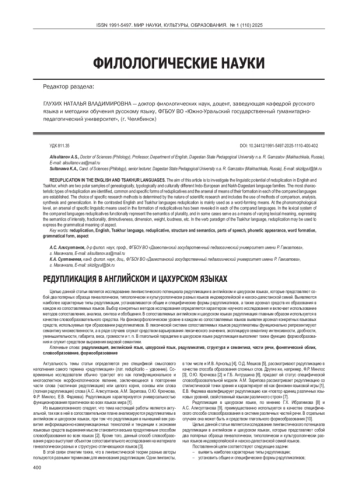 13. 	Арсентьева Е.Ф., Валиуллина Р.Б. Редупликация в современном английском и русском языках. Филология и культура. 2013; № 1 (31): 12-16.