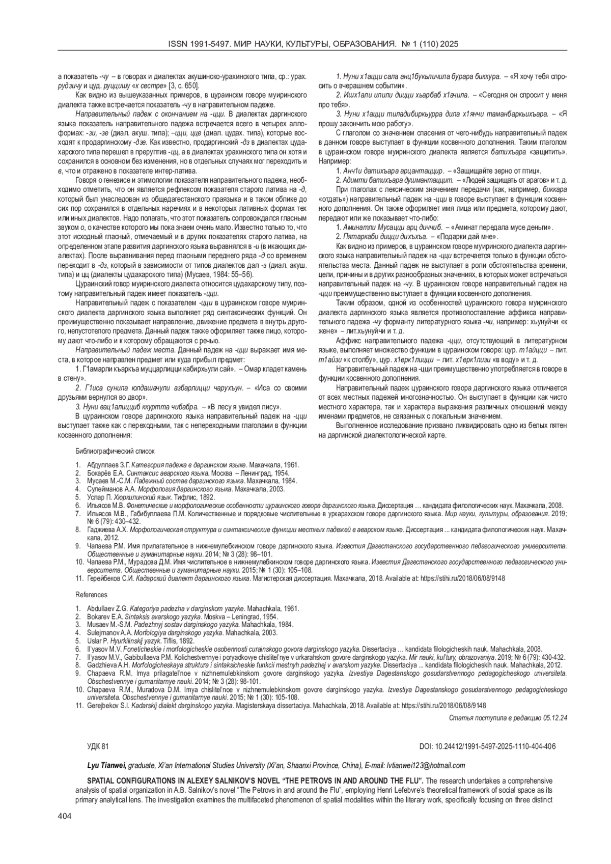 9. 	Чапаева Р.М. Имя прилагательное в нижнемулебкинском говоре даргинского языка. Известия Дагестанского государственного педагогического университета. Общественные и гуманитарные науки. 2014; № 3 (28): 98-101. EDN: SZGIQV