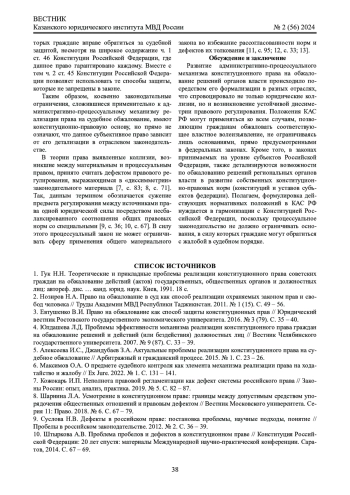 8. Шарнина Л.А. Усмотрение в конституционном праве: границы между допустимым средством упорядочения общественных отношений и правовым дефектом // Вестник Московского университета. Серия 11: Право. 2018. № 6. С. 67 - 79. EDN: YTNRML