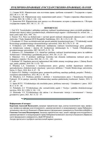 13. Денисенко В.В. Юридическая сила закона и ее обоснование: история и современность // История государства и права. 2021. № 3. С. 32 - 37. EDN: JOYYMI
