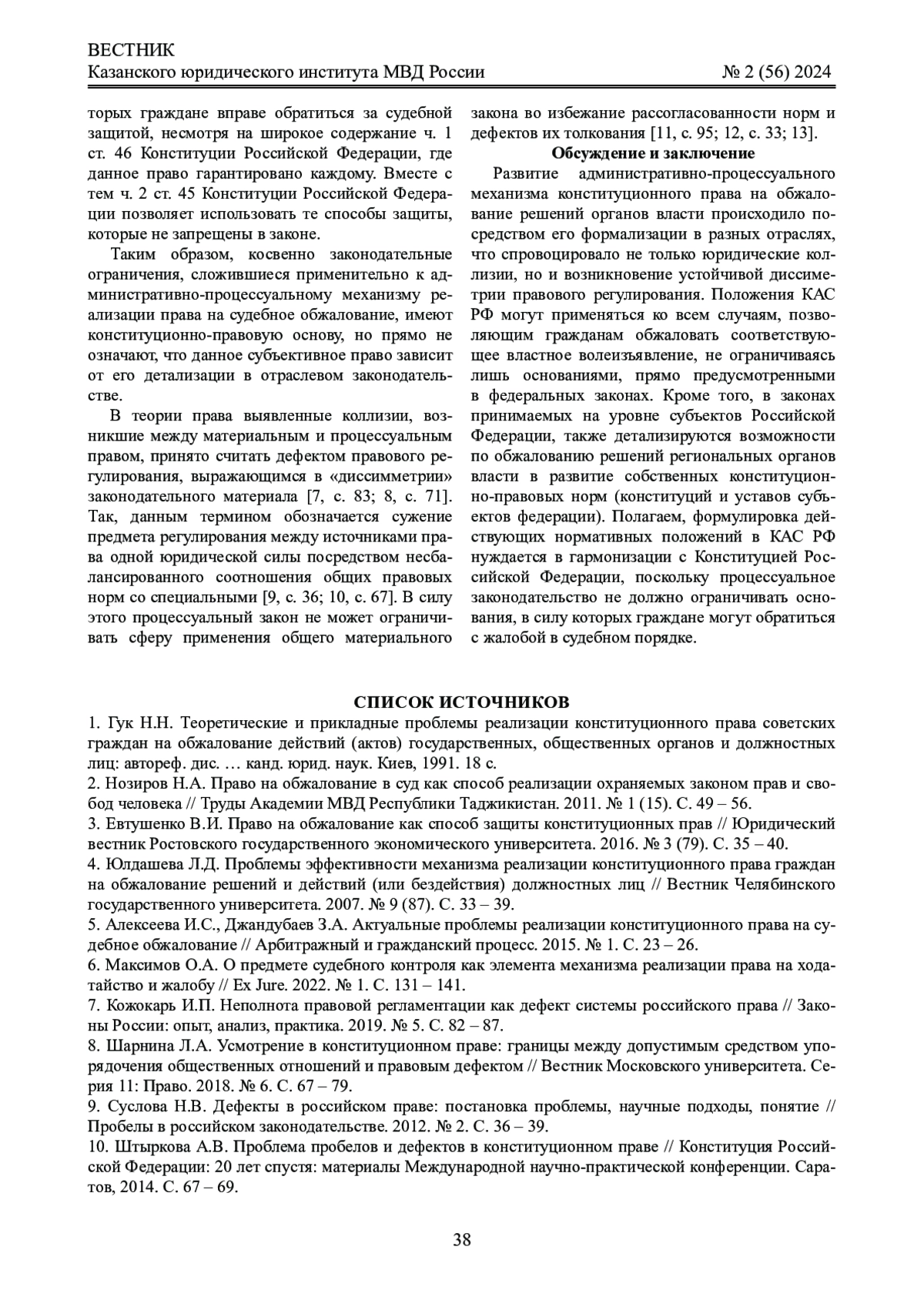 3. Евтушенко В.И. Право на обжалование как способ защиты конституционных прав // Юридический вестник Ростовского государственного экономического университета. 2016. № 3 (79). С. 35 - 40. EDN: XHRUBB