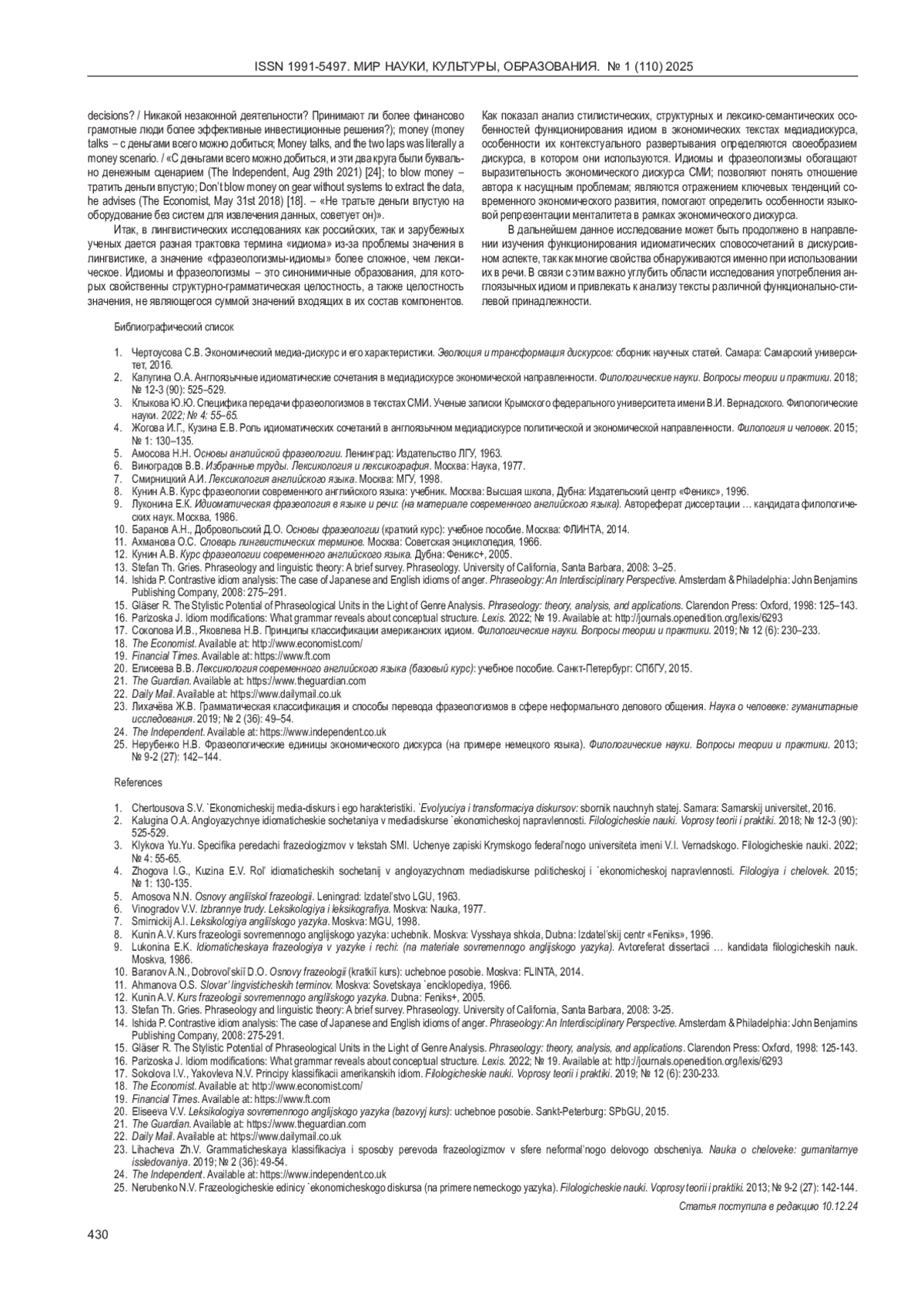 4. 	Жогова И.Г, Кузина Е.В. Роль идиоматических сочетаний в англоязычном медиадискурсе политической и экономической направленности. Филология и человек. 2015; № 1: 130-135. EDN: TKVGUD