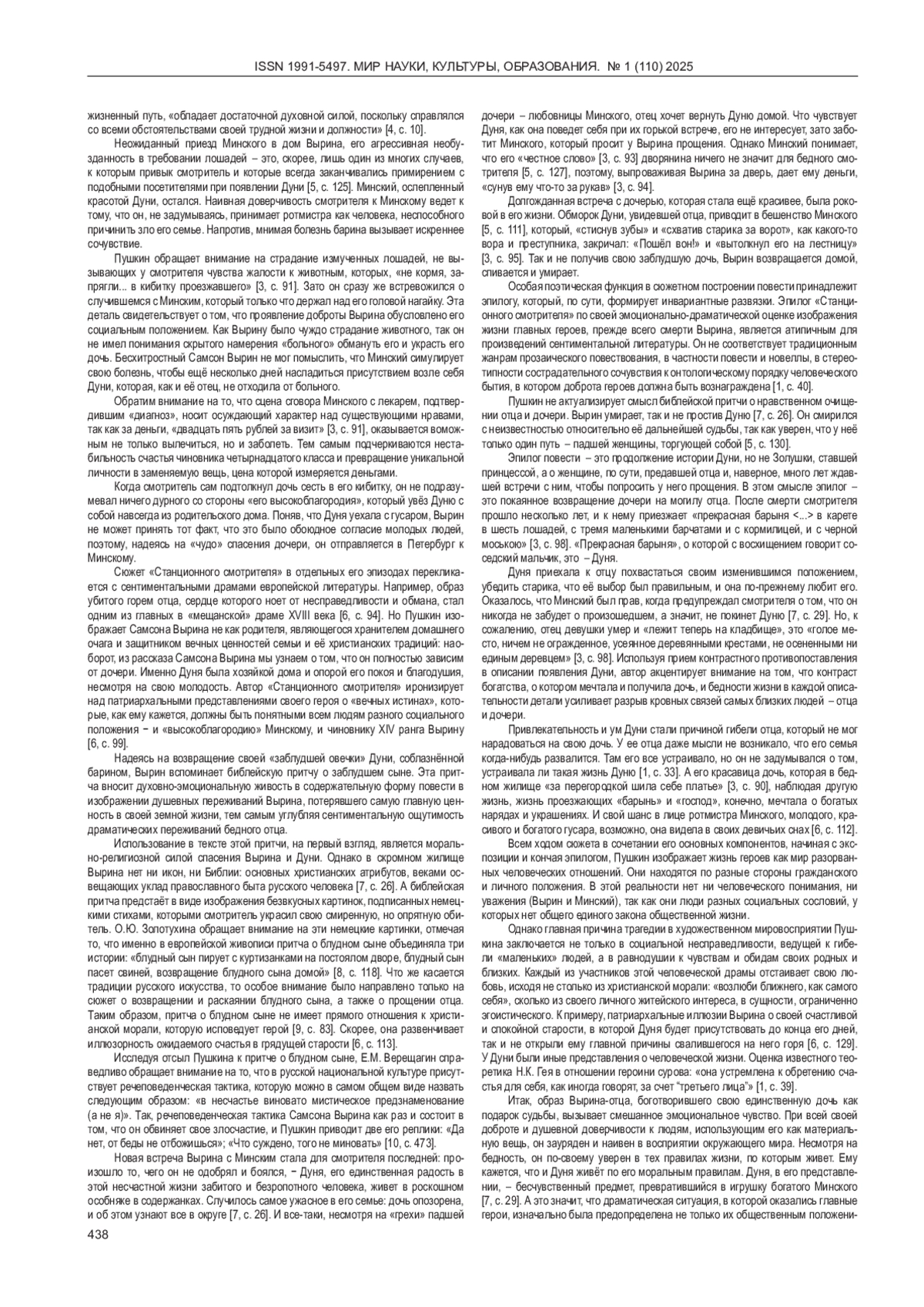 4. 	Шишова А.Ж., Бабенко Ж.В. Самсон Вырин как романтический герой в повести А.С. Пушкина “Станционный смотритель”. Юный ученый. 2023; № 6 (69): 9-12. EDN: WOASXM
