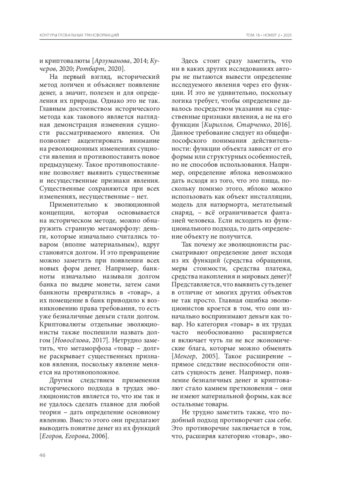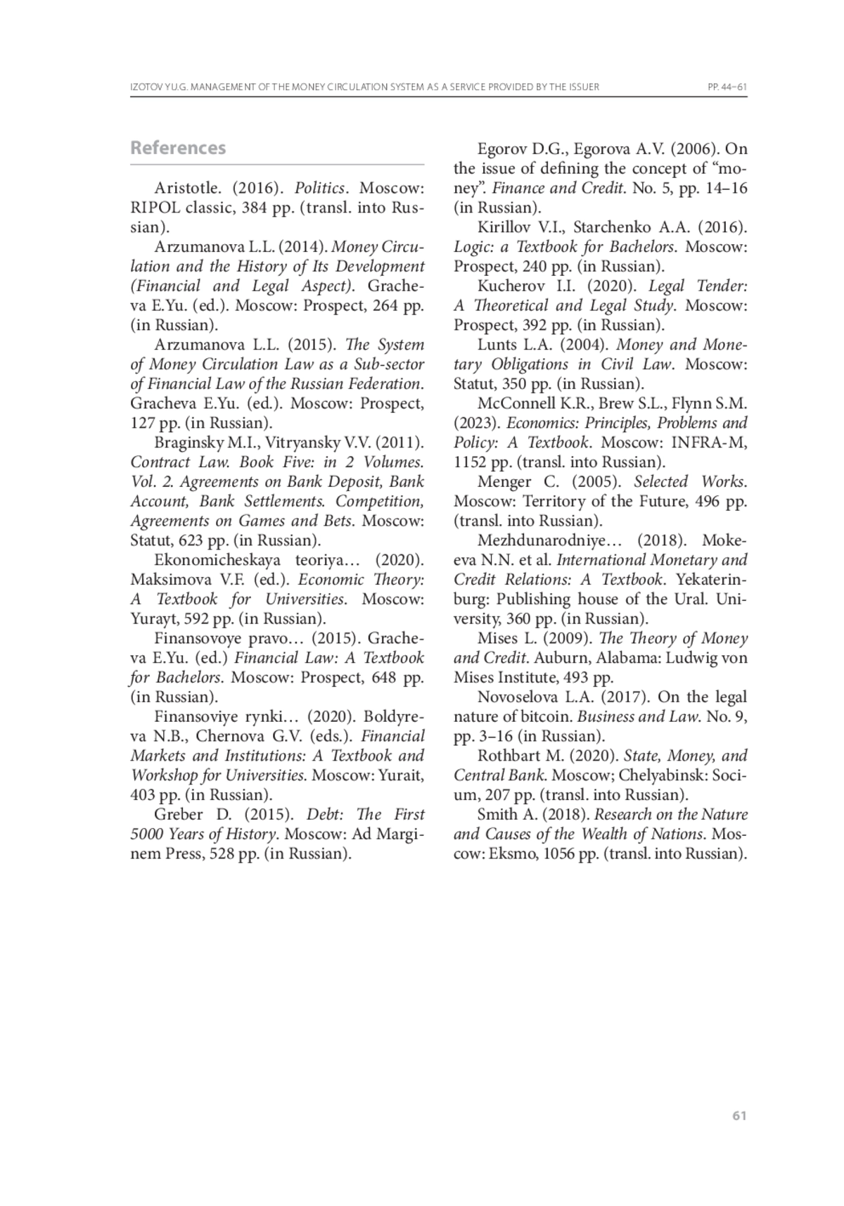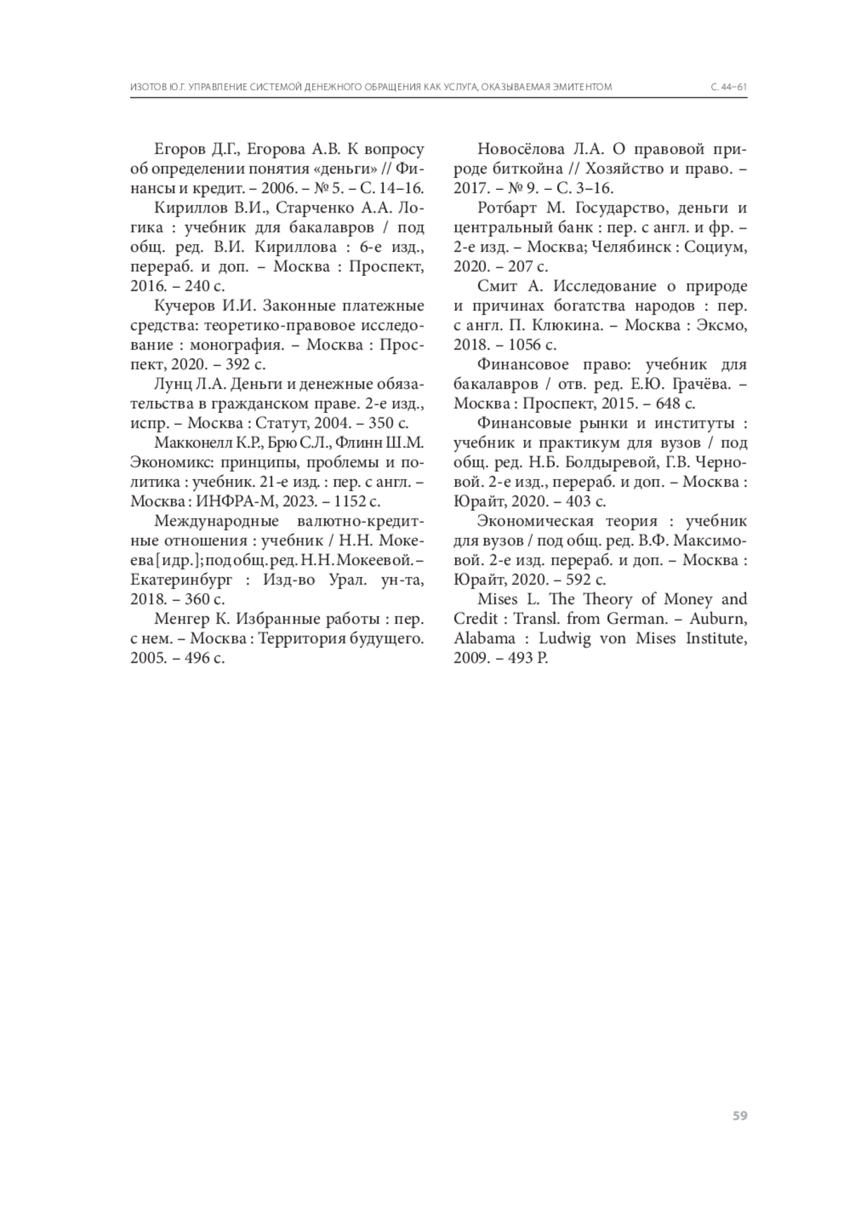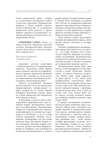 6. Егоров Д.Г., Егорова А.В. К вопросу об определении понятия «деньги» // Финансы и кредит. - 2006. - № 5. - С. 14-16.