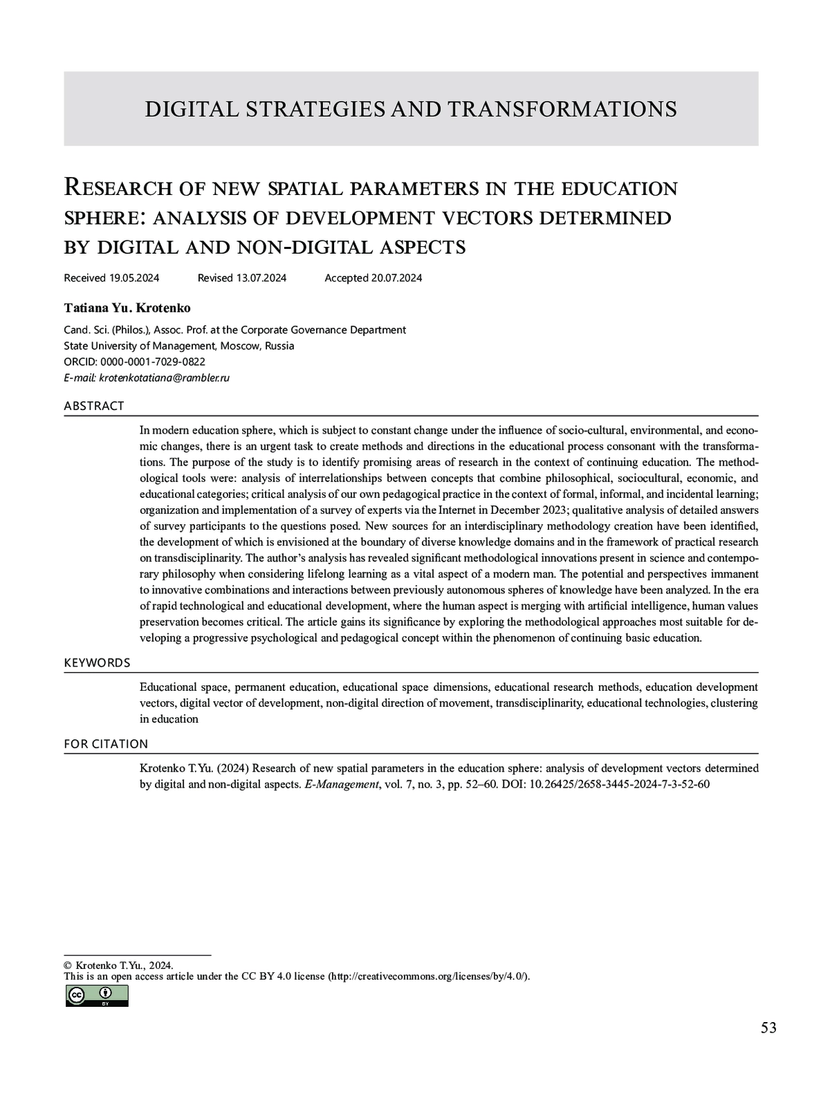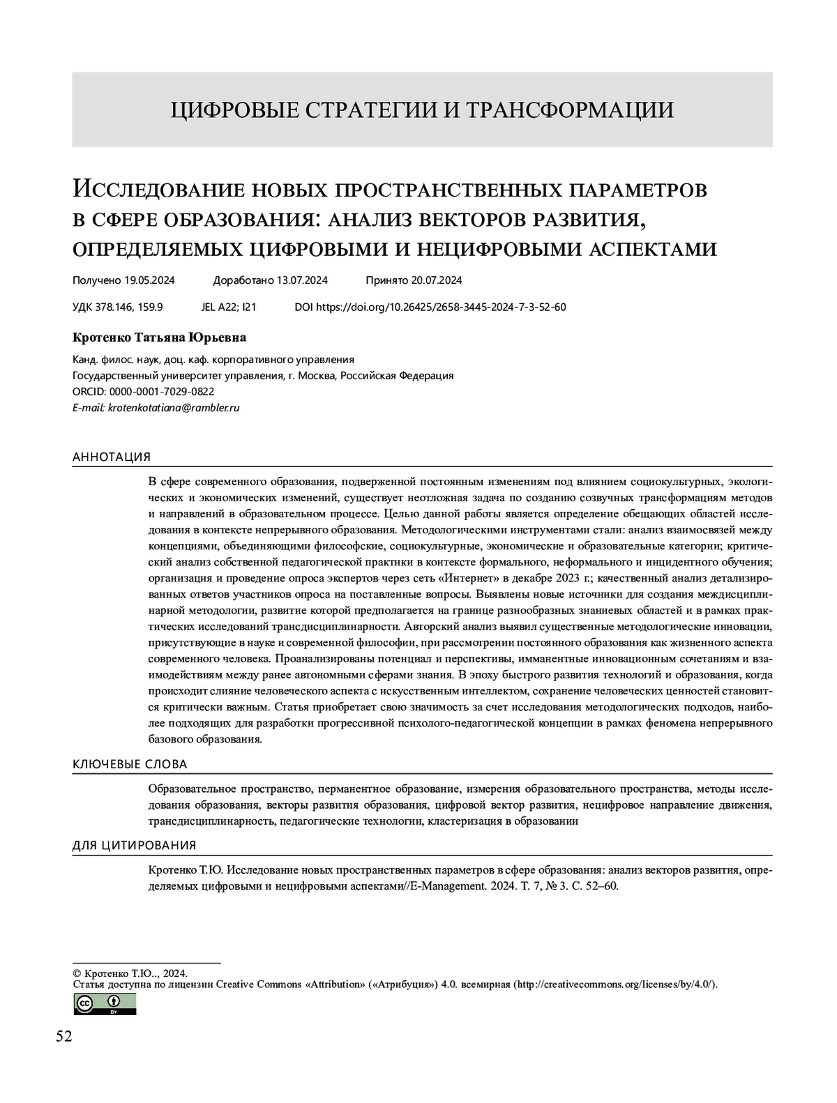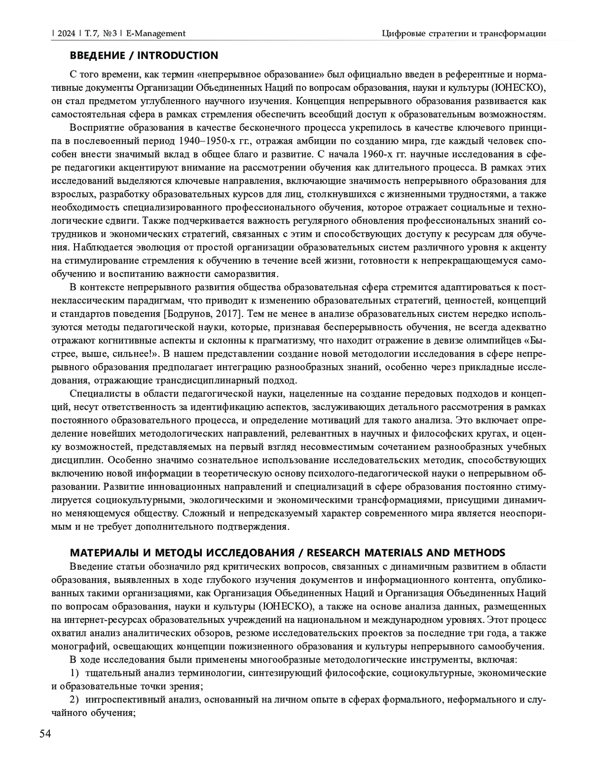 В сфере современного образования, подверженной постоянным изменениям под влиянием социокультурных, экологических и экономических изменений, существует неотложная задача по созданию созвучных трансформациям методов и направлений в образовательном процессе. Целью данной работы является определение обещающих областей исследования в контексте непрерывного образования. Методологическими инструментами стали: анализ взаимосвязей между концепциями, объединяющими философские, социокультурные, экономические и образовательные категории; критический анализ собственной педагогической практики в контексте формального, неформального и инцидентного обучения; организация и проведение опроса экспертов через сеть «Интернет» в декабре 2023 г.; качественный анализ детализированных ответов участников опроса на поставленные вопросы. Выявлены новые источники для создания междисциплинарной методологии, развитие которой предполагается на границе разнообразных знаниевых областей и в рамках практических исследований трансдисциплинарности. Авторский анализ выявил существенные методологические инновации, присутствующие в науке и современной философии, при рассмотрении постоянного образования как жизненного аспекта современного человека. Проанализированы потенциал и перспективы, имманентные инновационным сочетаниям и взаимодействиям между ранее автономными сферами знания. В эпоху быстрого развития технологий и образования, когда происходит слияние человеческого аспекта с искусственным интеллектом, сохранение человеческих ценностей становится критически важным. Статья приобретает свою значимость за счет исследования методологических подходов, наиболее подходящих для разработки прогрессивной психолого-педагогической концепции в рамках феномена непрерывного базового образования.