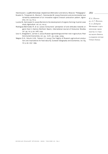 2. 	Виноградский В. Г., Виноградская О. Я., Никулина Е. С. (2020). Экология сельского мира как предмет социологического исследования // Крестьяноведение. Т. 5. № 1. С. 125-142.  EDN: QOFVKM
