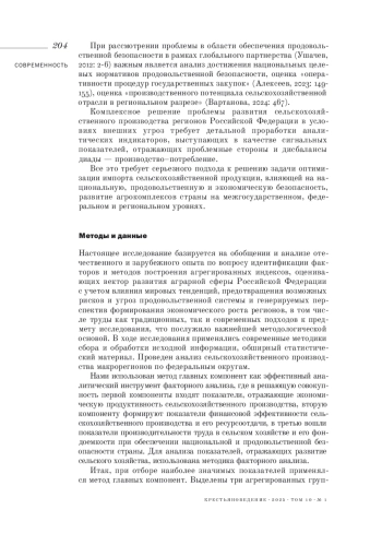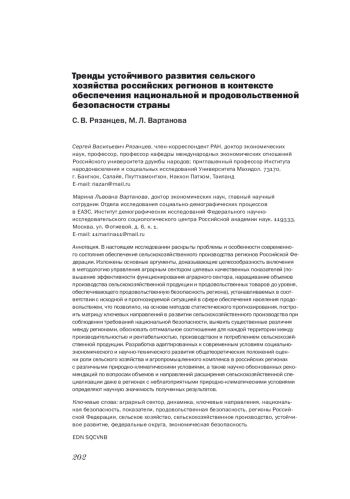 Аграрный сектор Российской Федерации является важнейшим индикатором экономического развития страны и определяет состояние национальной продовольственной безопасности, которая, в свою очередь, связана с ресурсными возможностями агропромышленного комплекса производить необходимое количество продовольствия