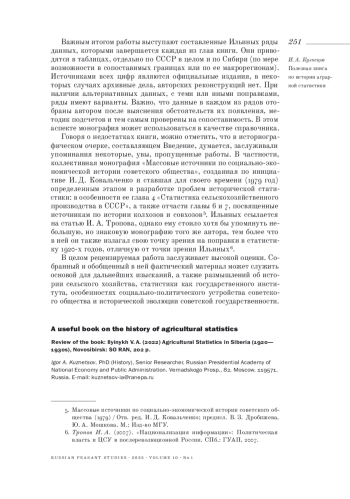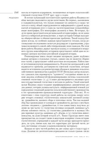 Рецензия на книгу: Ильиных В. А. Сельскохозяйственная статистика в Сибири (1920-1930-е гг.). Новосибирск: СО РАН, 2022. - 202 с. ISBN 978-5-6047824-5-3.