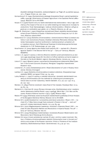 47. Antsiferov A. N., Bilimovich A. D., Batshev M. O., Ivantsov D. N. (1930).Russian Agriculture during the War. New York: Greenwood Press.