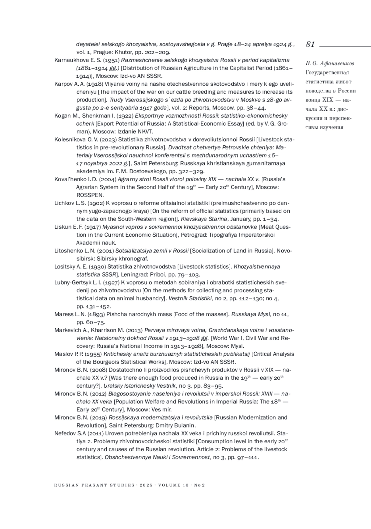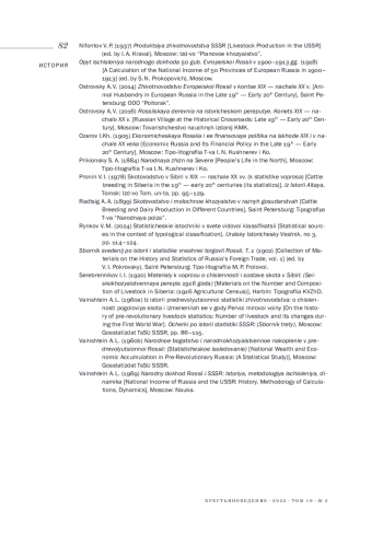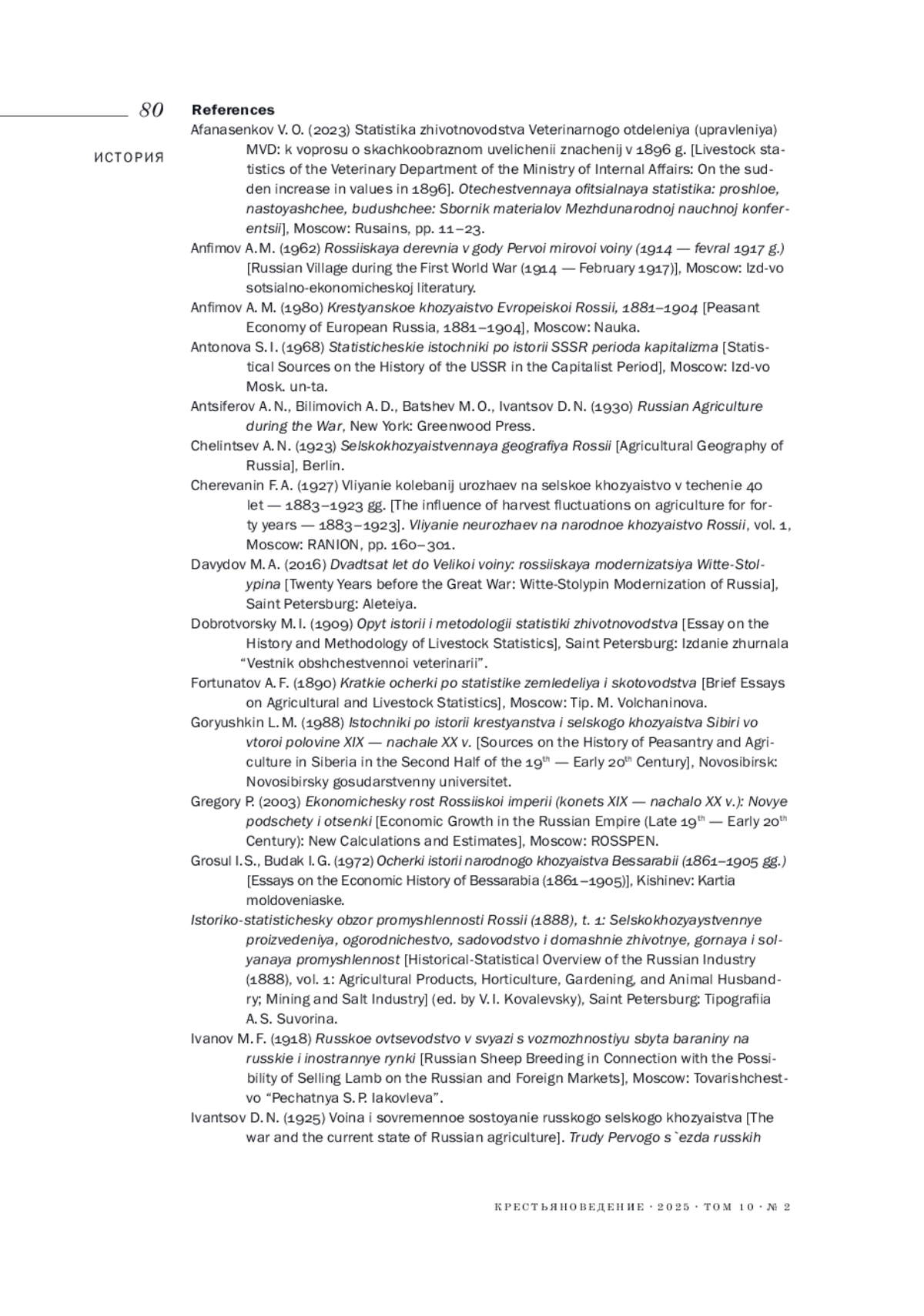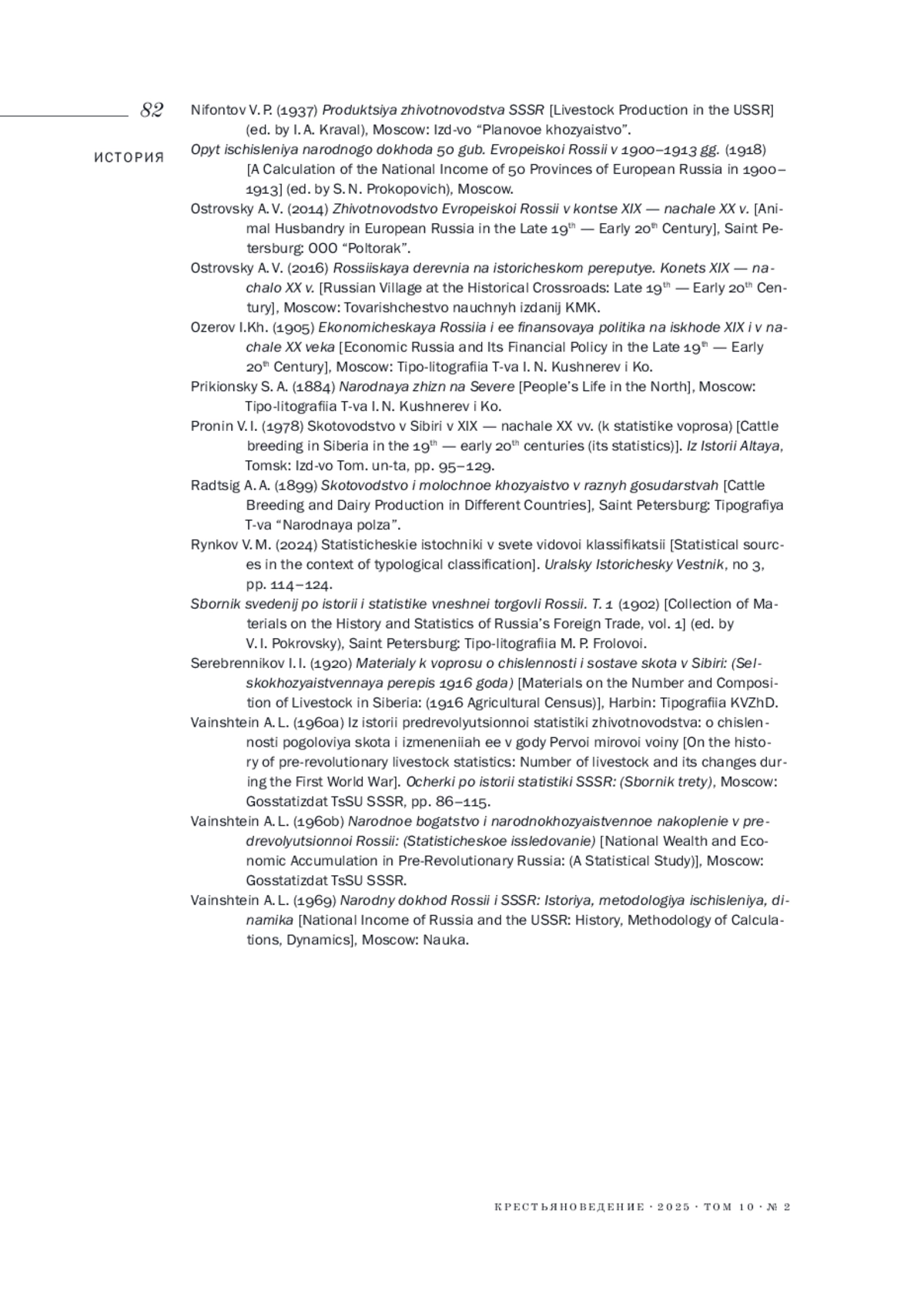32. Нефедов С. А. (2011). Уровень потребления начала XX века и причины русской революции. Статья 2. Проблемы животноводческой статистики // Общественные науки и современность. № 3. С. 97-111. EDN: NUIXZP