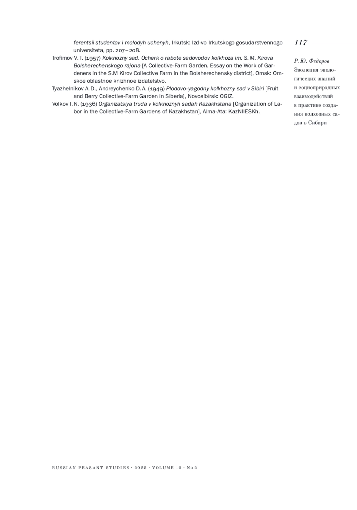3. 	Волков И. Н. (1936). Организация труда в колхозных садах Казахстана. Алма-Ата: Каз-НИИЭСХ.