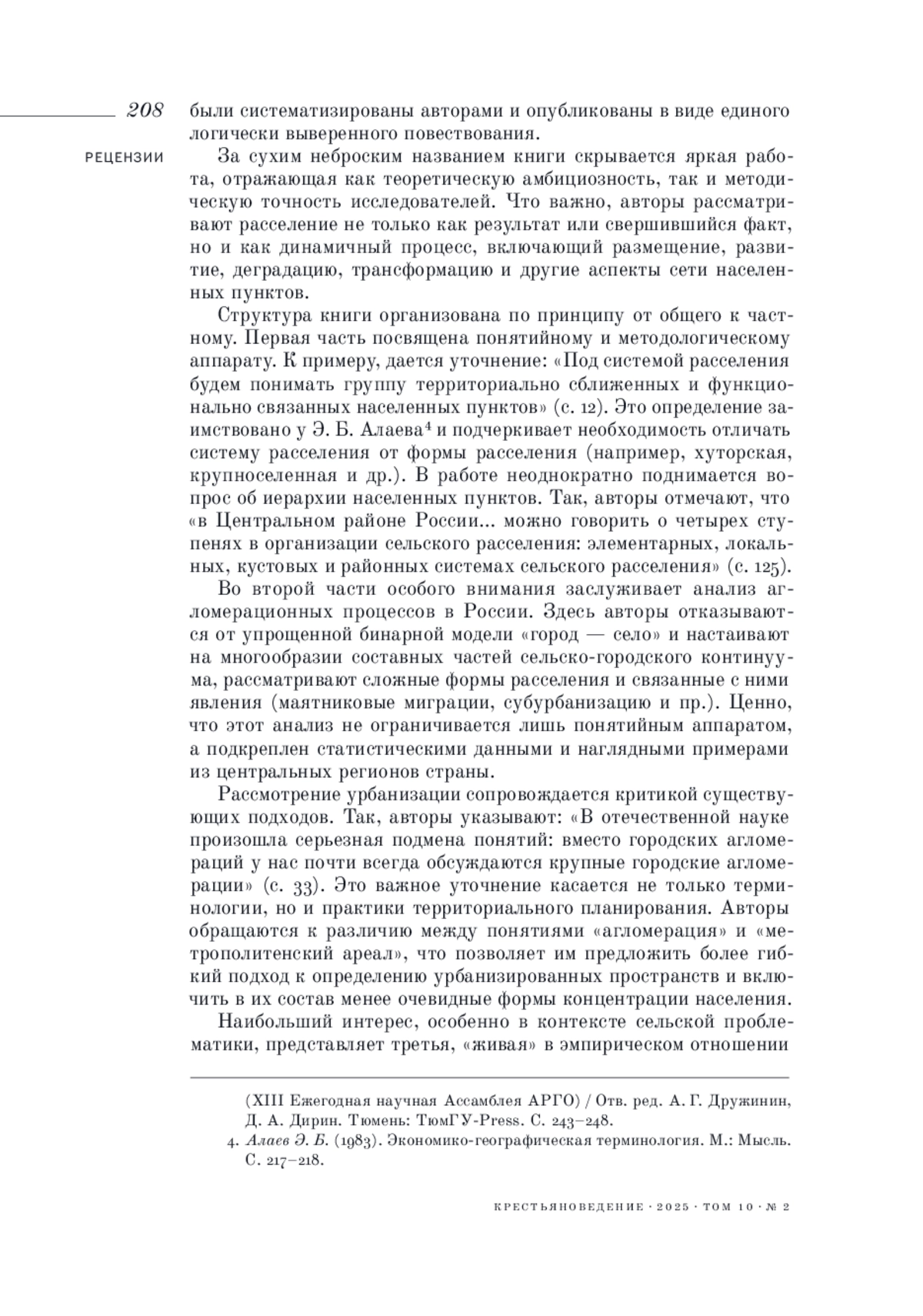 Рецензия на книгу: Быстрова Т. Ю., Мазаев Г. В. Сельское расселение: история и типология. Екатеринбург: TATLIN, 2024. - 108 с. ISBN: 978-5-00075-362-0