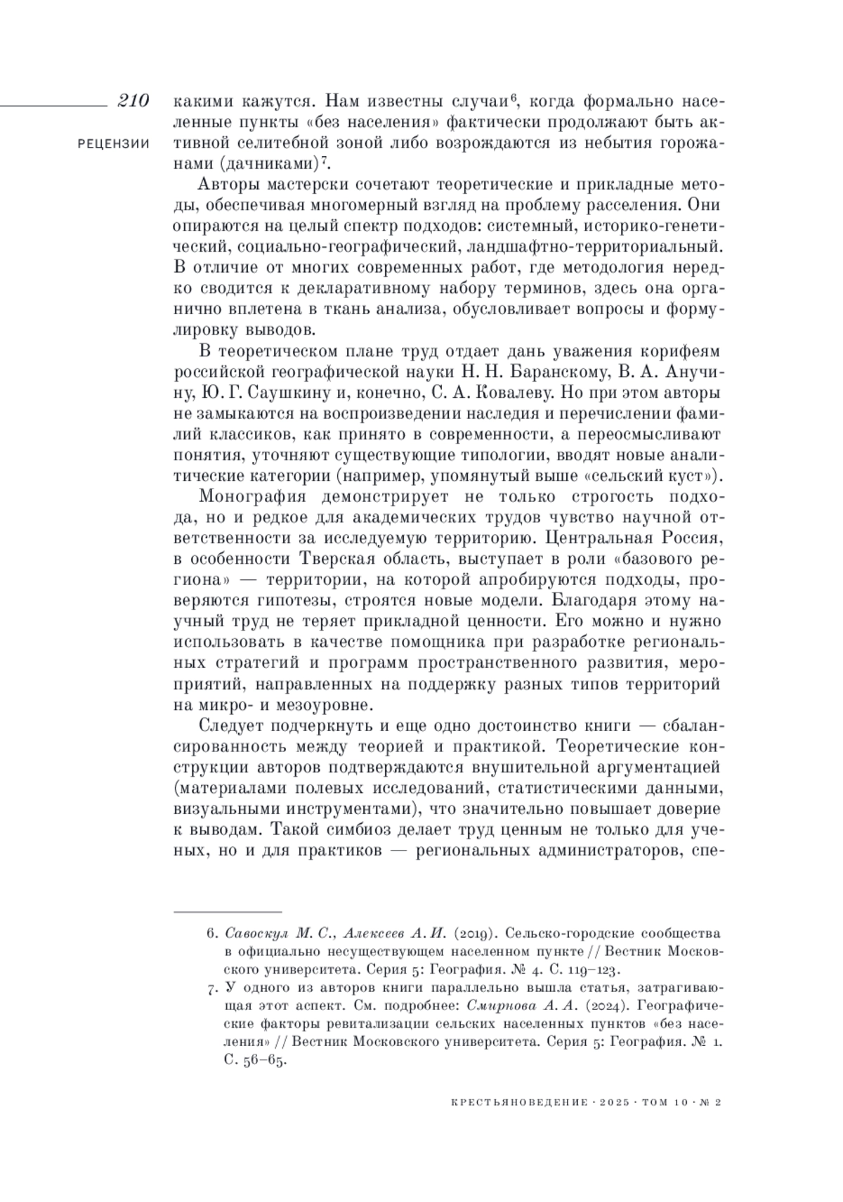 6. Савоскул М. С., Алексеев А. И. (2019). Сельско-городские сообщества в официально несуществующем населенном пункте // Вестник Московского университета. Серия 5: География. № 4. С. 119-123. EDN: PTPVLV