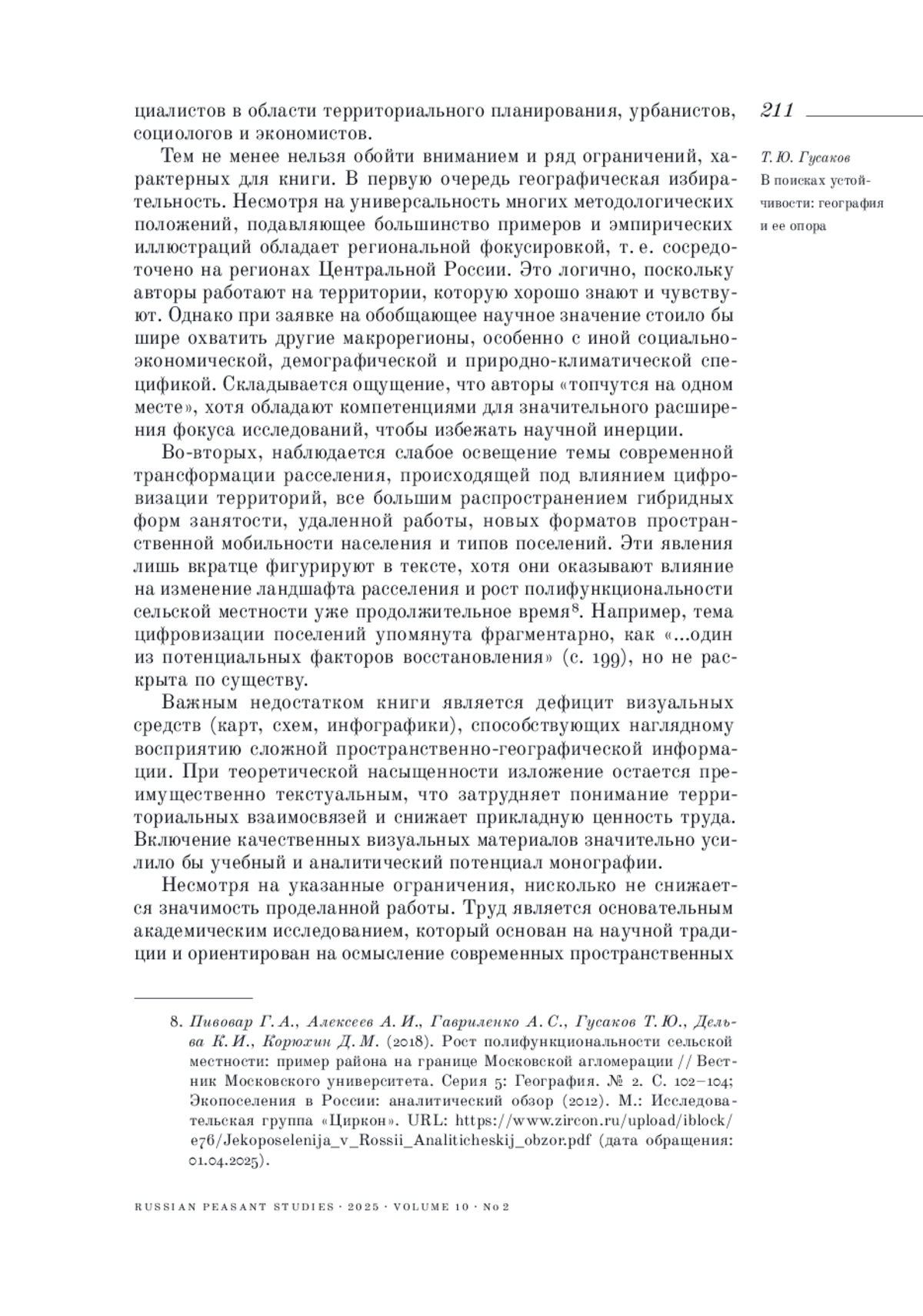 4. Пивовар Г. А., Алексеев А. И., Гавриленко А. С., Гусаков Т. Ю., Дельва К. И., Корюхин Д. М. (2018). Рост полифункциональности сельской местности: пример района на границе Московской агломерации // Вестник Московского университета. Серия 5: География. № 2. С. 102-104. EDN: YUUDKM