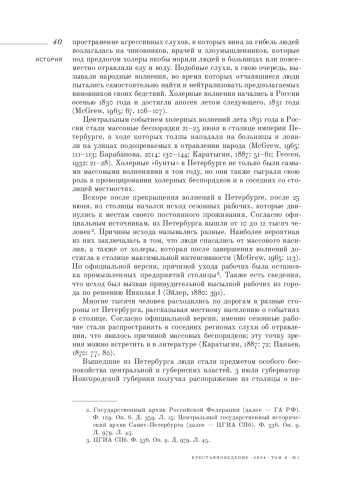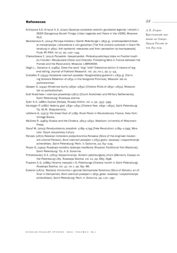 2. 	Барабанова К. С. (2014). Первая холера в Санкт-Петербурге в 1831 г.: противоэпидемические мероприятия и отношение к ним горожан // Труды Института российской истории РАН. № 12. С. 130-144.  EDN: VKSZSH
