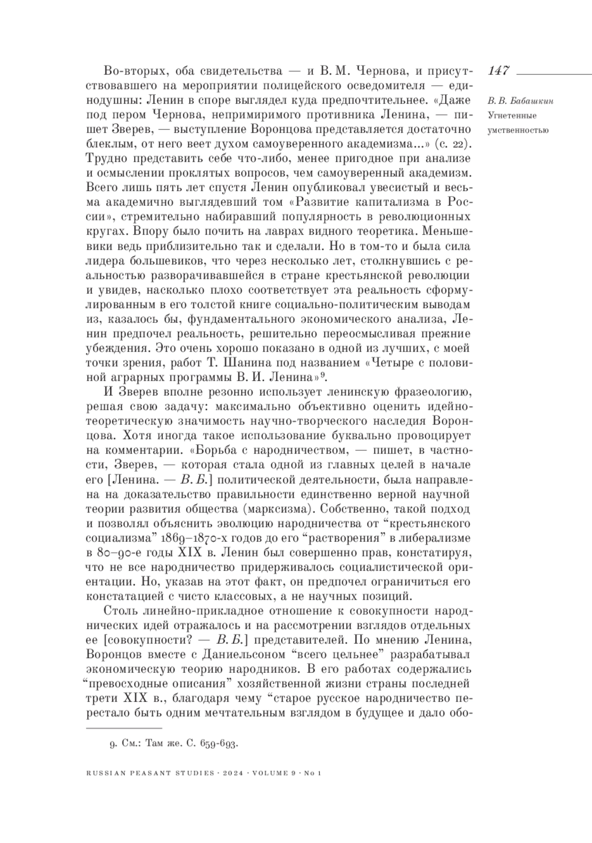 1. Бабашкин В. В. (2008). О некоторых особенностях социального поведения крестьян: историк и художественная литература // Пути России: культура - общество - человек: материалы Международного симпозиума (25-26 января 2008 года) / Под общ. ред. А. М. Никулина. М. С. 365-375. EDN: CHAXJW