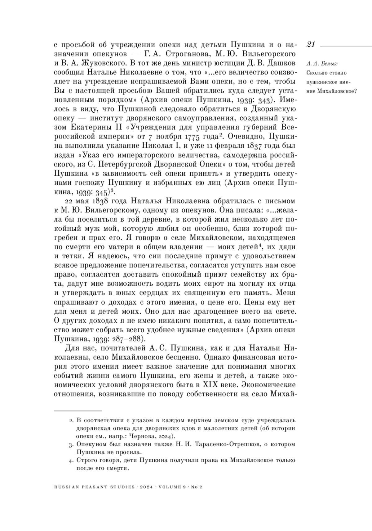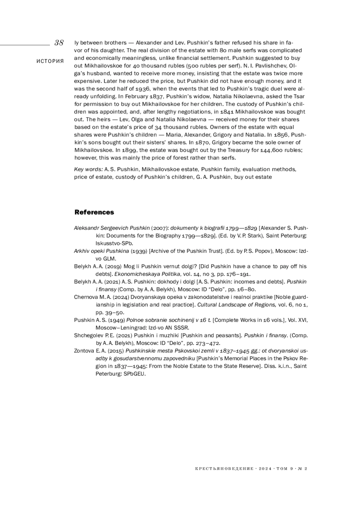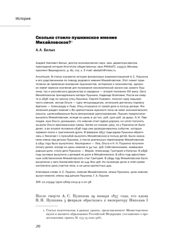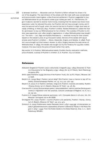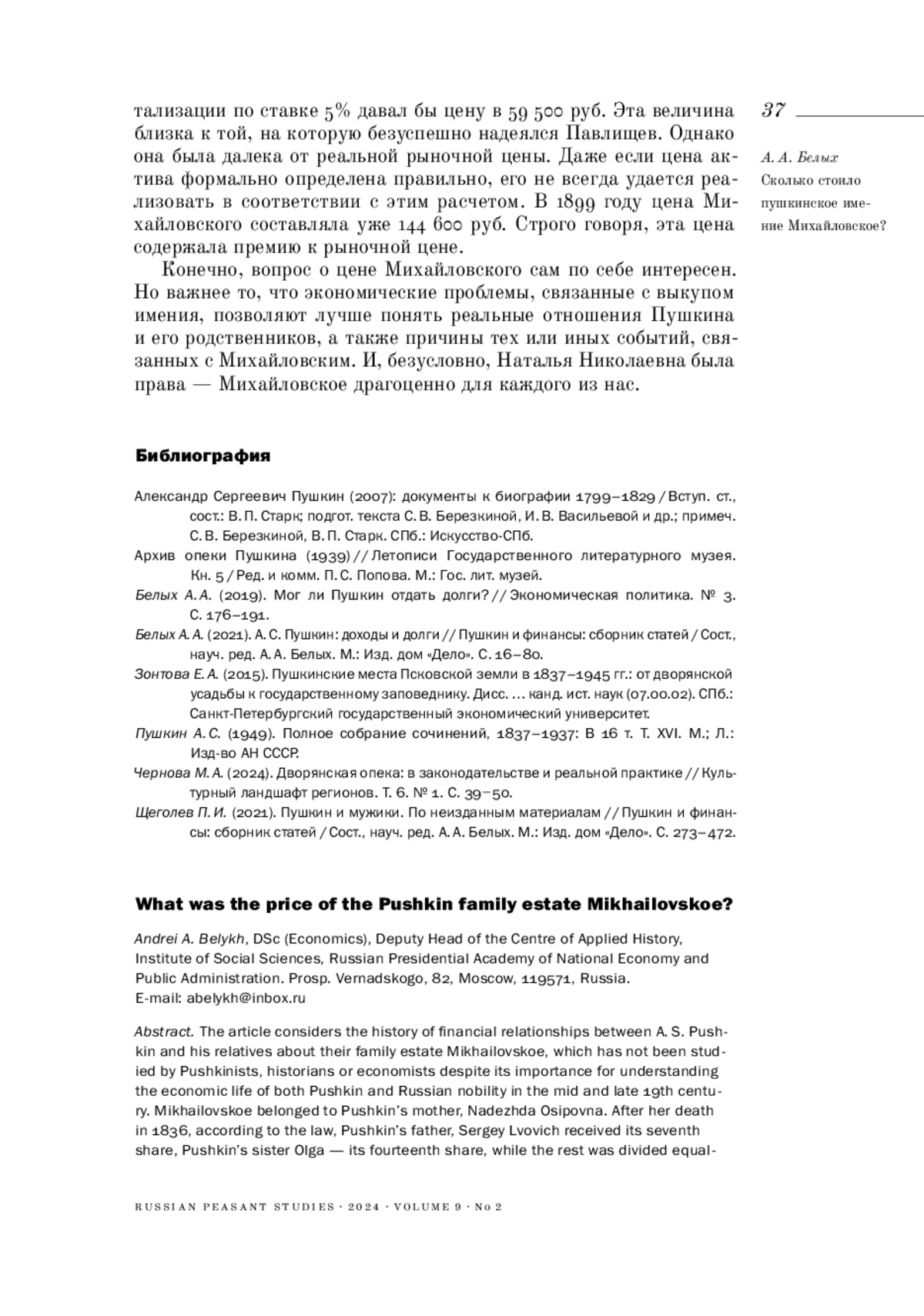 3. 	Белых А. А. (2019). Мог ли Пушкин отдать долги? // Экономическая политика. № 3. С. 176-191.  EDN: NORJPP