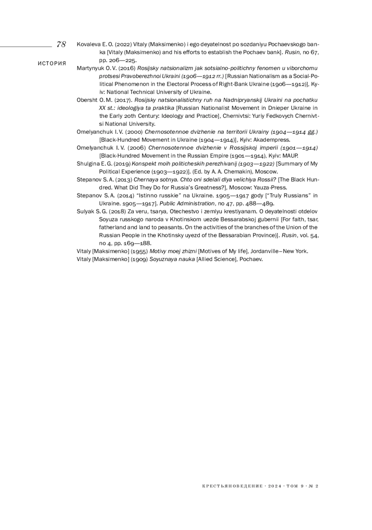 12. Степанов С. А. (2014). “Истинно русские” на Украине. 1905-1917 годы // Государственное управление. Электронный вестник. № 47. С. 488-489. EDN: ANNWVM
