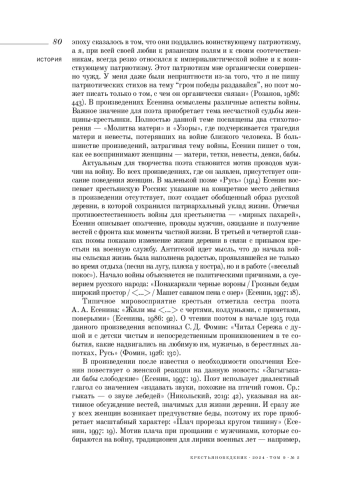 Большая часть произведений С. А. Есенина, созданных в 1914–1915 годах и являющихся откликами на события Первой мировой войны, отражает жизнь деревни и изменение привычного крестьянского уклада. Поэт подчеркивал особый характер освещения военной темы в своем творчестве: «Резкое различие со многими петербургскими поэтами в ту эпоху сказалось в том, что они поддались воинствующему патриотизму, а я, при всей своей любви к рязанским полям и к своим соотечественникам, всегда резко относился к империалистической войне и к воинствующему патриотизму. Этот патриотизм мне органически совершенно чужд. У меня даже были неприятности из-за того, что я не пишу патриотических стихов на тему “гром победы раздавайся”, но поэт может писать только о том, с чем он органически связан» (Розанов, 1986: 443)