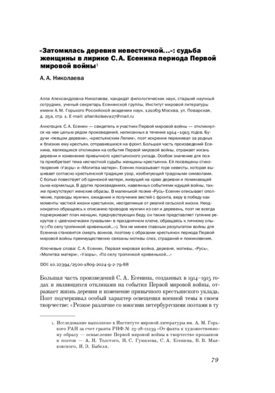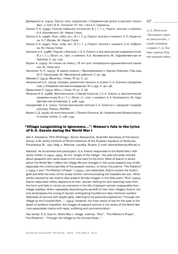 20. 	Никольский А. А. (2019). Словарь диалектной лексики в поэзии С. А. Есенина (продолжение) // Современное есениноведение. № 2 (49). С. 40-46.  EDN: ZHDRXK
