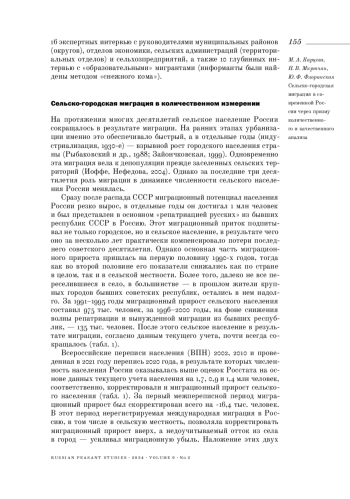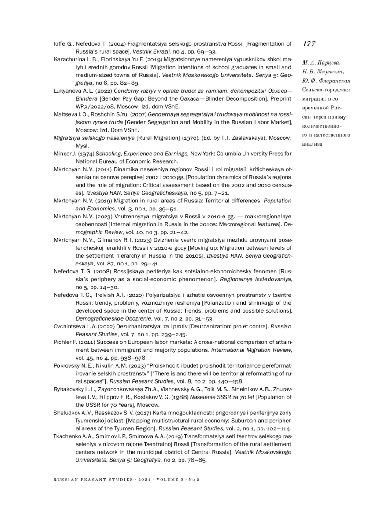28. 	Mkrtchyan N. V. (2019). Migration in rural areas of Russia: Territorial differences // Population and Economics. Vol. 3. № 1. P. 39-51.  EDN: JAPEJF