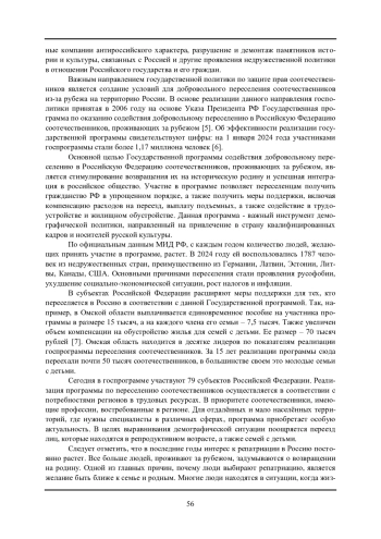 6. О реализации Государственной программы по оказанию содействия добровольному переселению в Российскую Федерацию соотечественников, проживающих за рубежом. - URL: https://pravfond.ru/press-tsentr/stati/o-realizatsii-gosudarstvennoy-programmy-po-okazaniyu-sodeystviya-dobrovolnomu-pereseleniyu-v-rossiys/(дата обращения: 10.06.2025).
