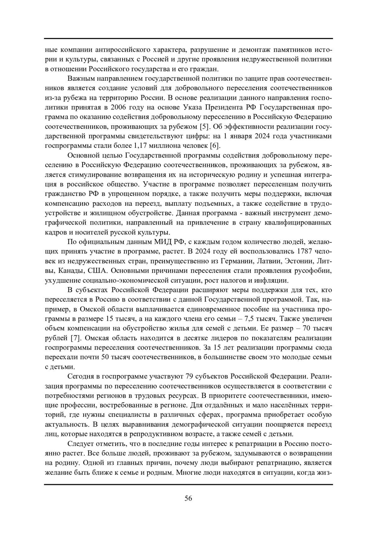 7. В Омской области расширили меры поддержки по программе переселения соотечественников из-за рубежа. - URL: // https://pravfond.ru/press-tsentr/v-omskoy-oblasti-rasshirili-mery-podderzhki-po-programme-pereseleniya-sootechestvennikov-iz-za-rubezh/(дата обращения: 10.06.2025).